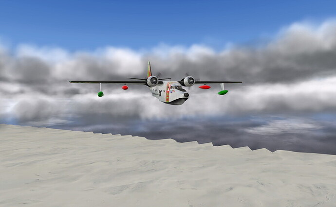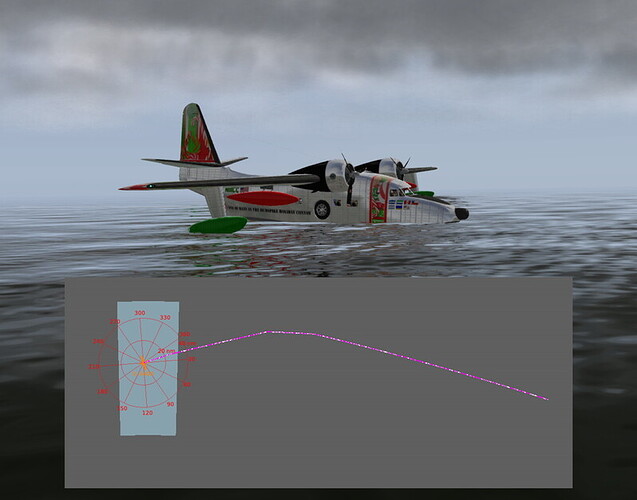I’m flying the now two-year old Khamsin/HydroZ HU-16, to which I’ve applied Ddenn’s Materials_NG plugin and my own livery.