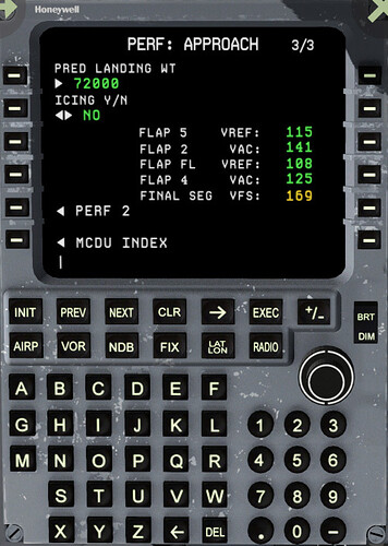 A quick look at the performance page shows our full flap Vref of 115 knots…