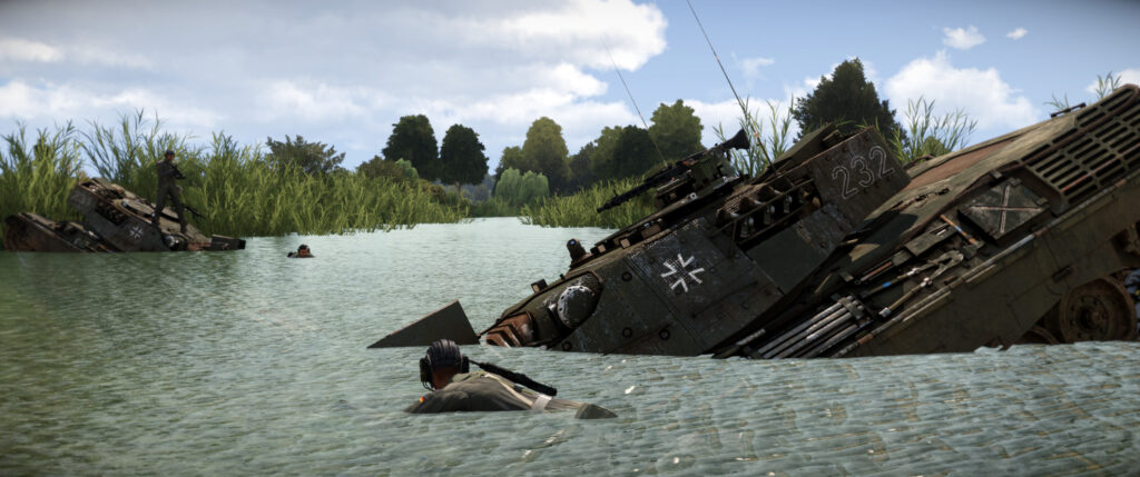 Adding to the immersion is the wonderful terrain that the developer’s created with this DLC. Again, not being an expert on German geography, it felt authentic enough. Border crossings are well represented and wide areas of armor friendly terrain mix with dense forests and tight quarters maneuvering through villages. Canals and rivers feature heavily, funneling forces into crossing areas that are prime candidates for action. Long distance tank battles preceded by a good bit of reconnaissance remind me of the hunter/killer action that I enjoy in combat helicopter simulations.