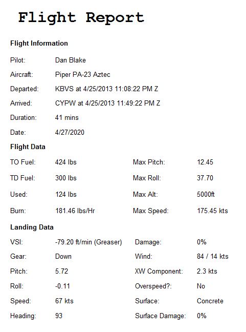 - 2 hour fuel burn - 8 gph x 2 hr = 16 gal = 96 lbs. (this might actually be 10 gph)