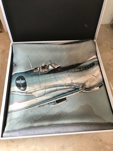 The IWC Silver Spitfire scarf by artist Romain Hugault, boxed: