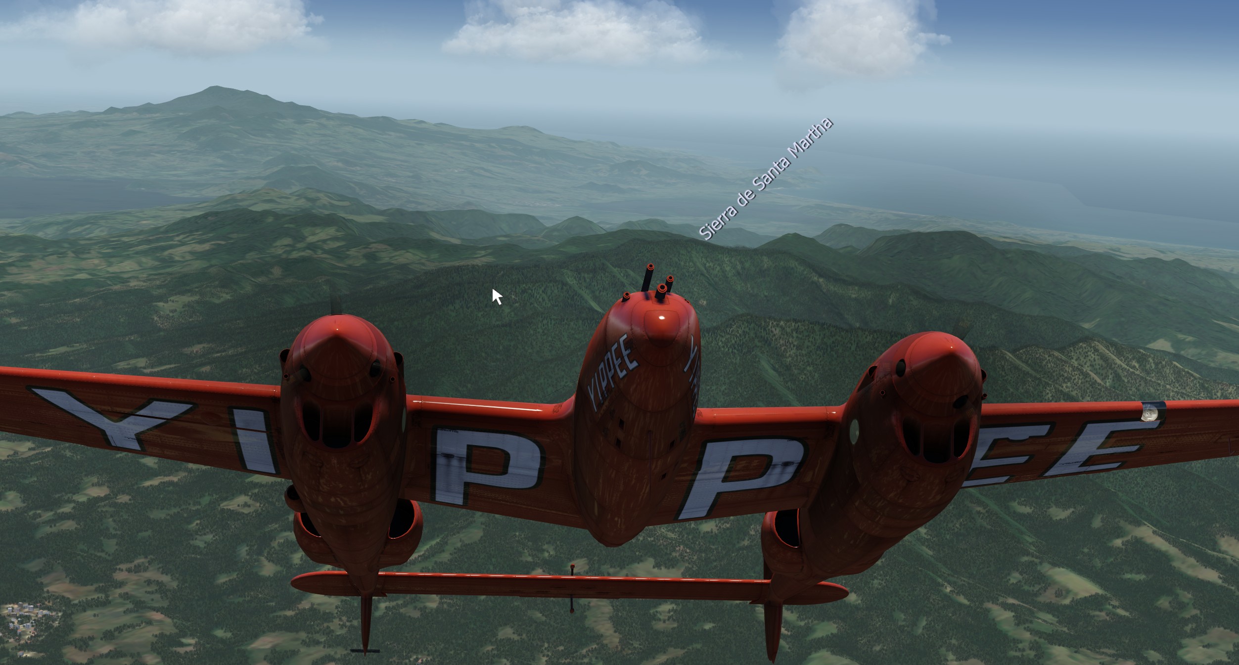 Over the Gulf of MEXICO, with the coastline of the Yucatan Peninsular up ahead. IIRC I passed just to the east of Merida. At this point, I had to step away from the PC for awhile.