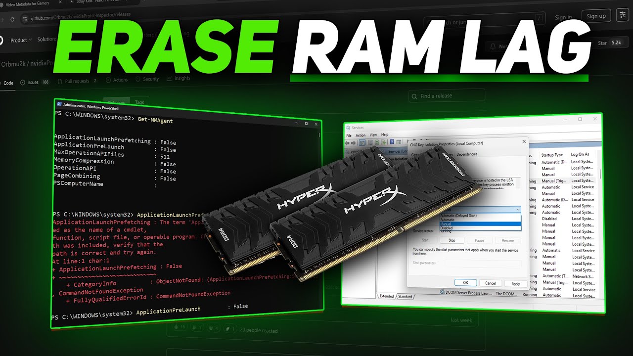 Skimmed the first bit. He disables memory compression. I wouldn’t expect memory compression to cause significant issues, but maybe this happens in some games?