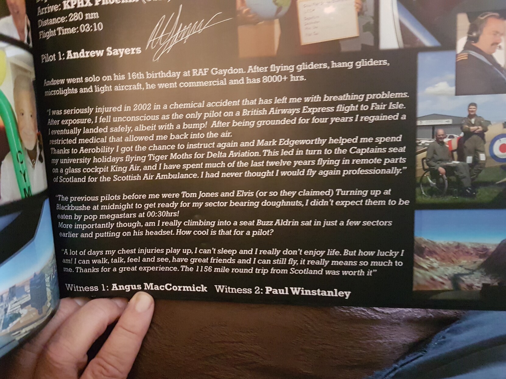 Buzz was scheduled to fly one sector but he volunteered to fly with many pilots as their co pilot. He was and still is an indomitable supporter of Aerobility and was.a huge boost to everyones morale. He has been back severaltimes since then to the Blackbushe base. The simulator has changed but not the target which is to enable all to fly and if possible overcome their physical or other problems. We raised over ÂŁ100,000.