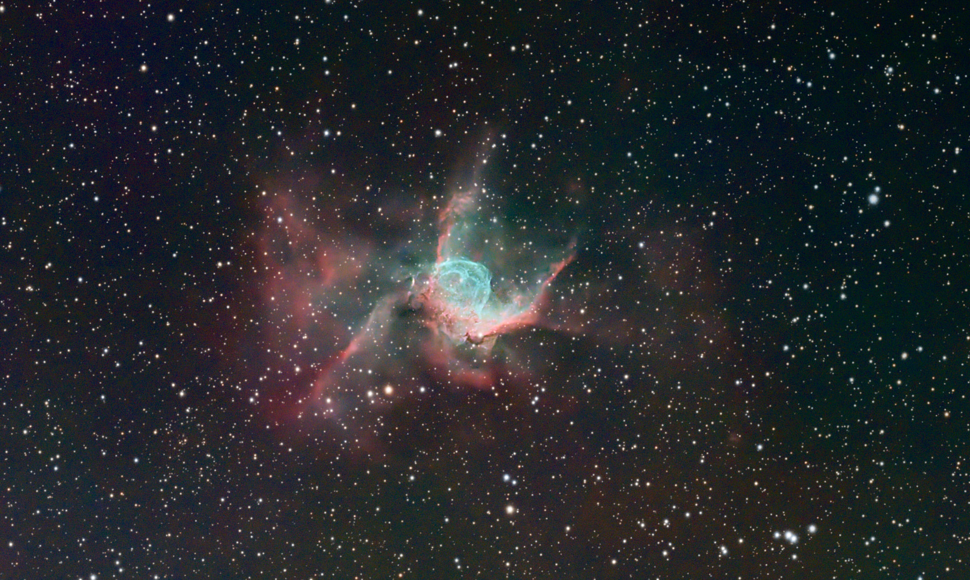‘First Light’ from my little observatory - a quick image of Thor’s Helmet (NGC2359)..