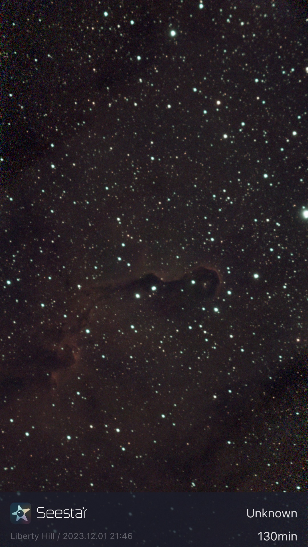 I have both the Seestar and my main imaging rig shooting the Elephant’s Trunk Nebula. It’s forecast to cloud over at about midnight, but I will hopefully get a pair of images to show that will be good for a comparison.