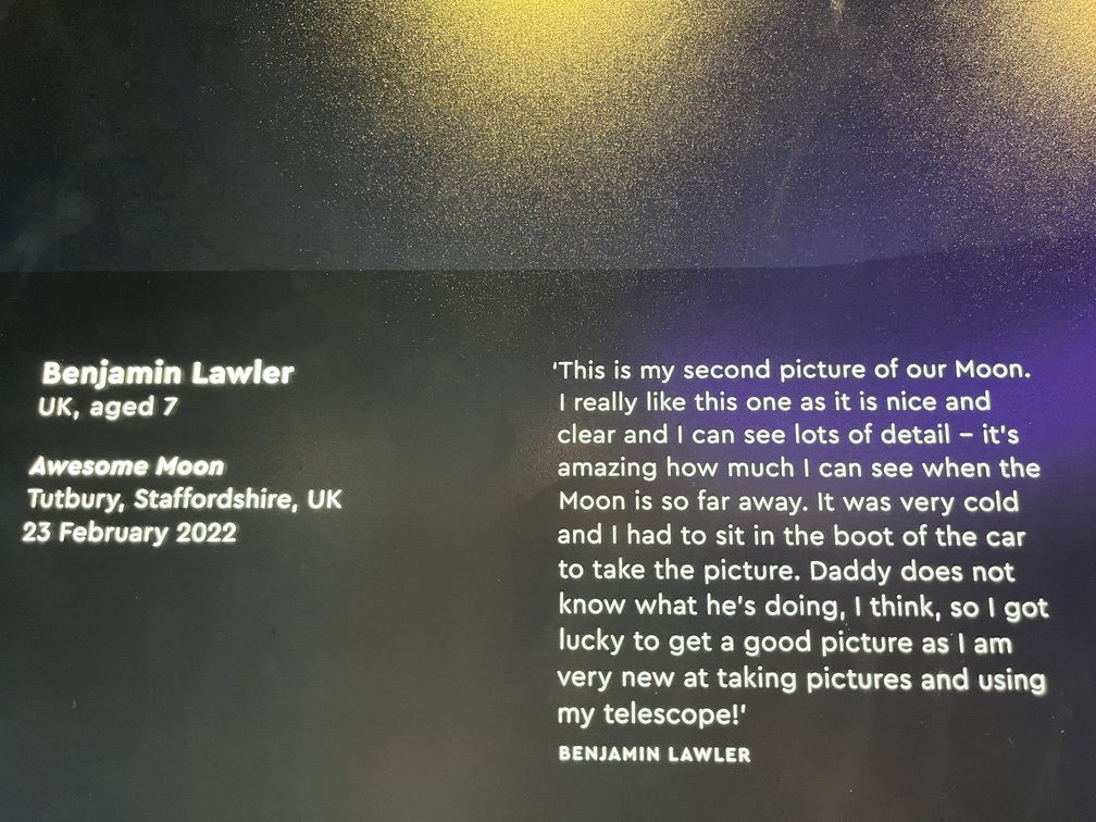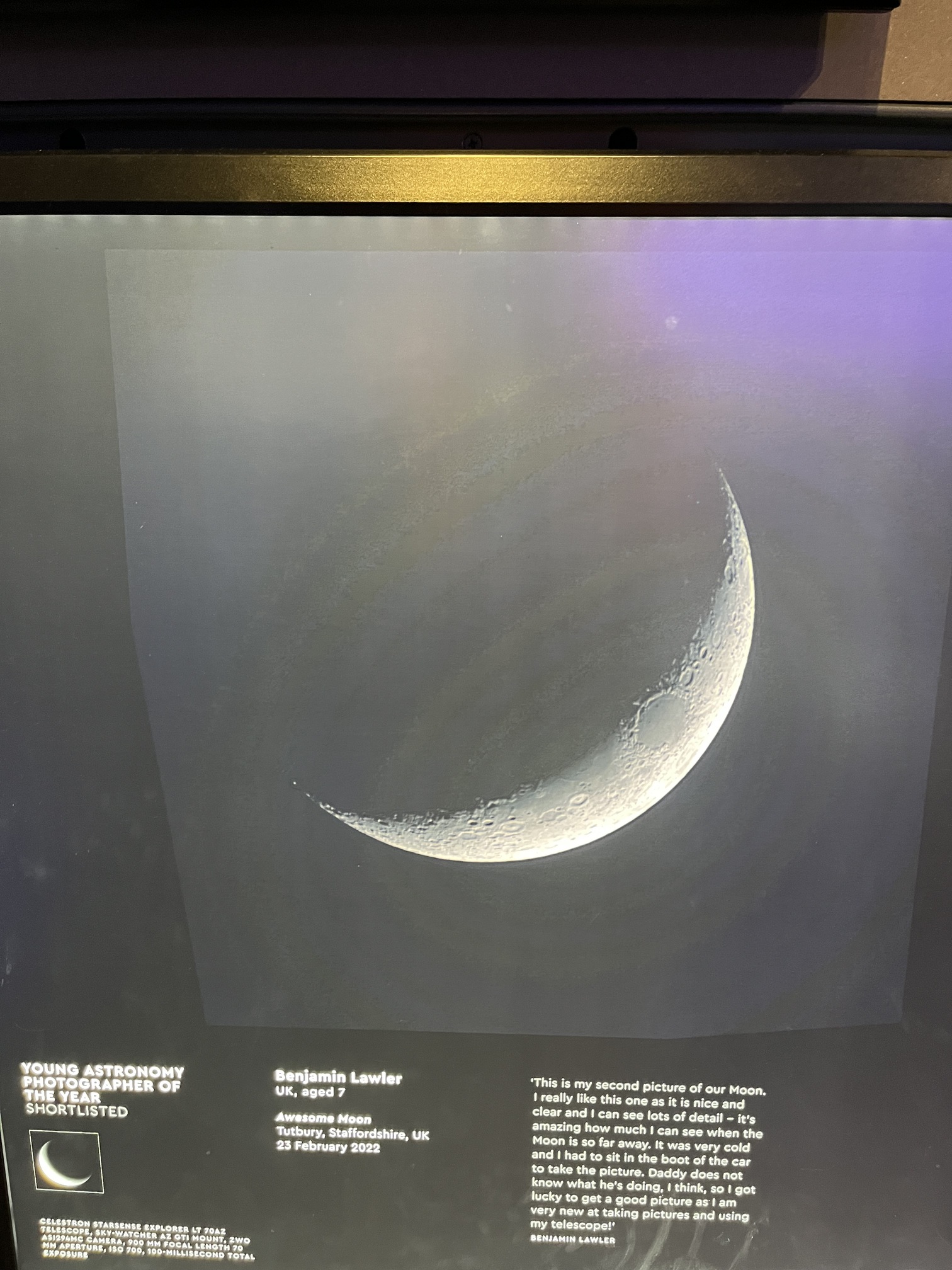 @PaulRix I hope you don’t mind a little hijacking. I was at the Greenwich Maritime Museum today. Much of it is closed due to upgrades. So TBH it’s a bit boring (but also free). What wasn’t boring was the astronomy photography section. All the examples were recent so maybe this is an annual thing. All were totally, mindexpandingly beautiful. Many of the winningest entries were from China and Iran. I don’t know why that impressed me. One local kid did get a prize and he deserved it. (Don’t bother with the picture; just read his narrative. Many of us here are fathers and can relate to the poetry of the moment)