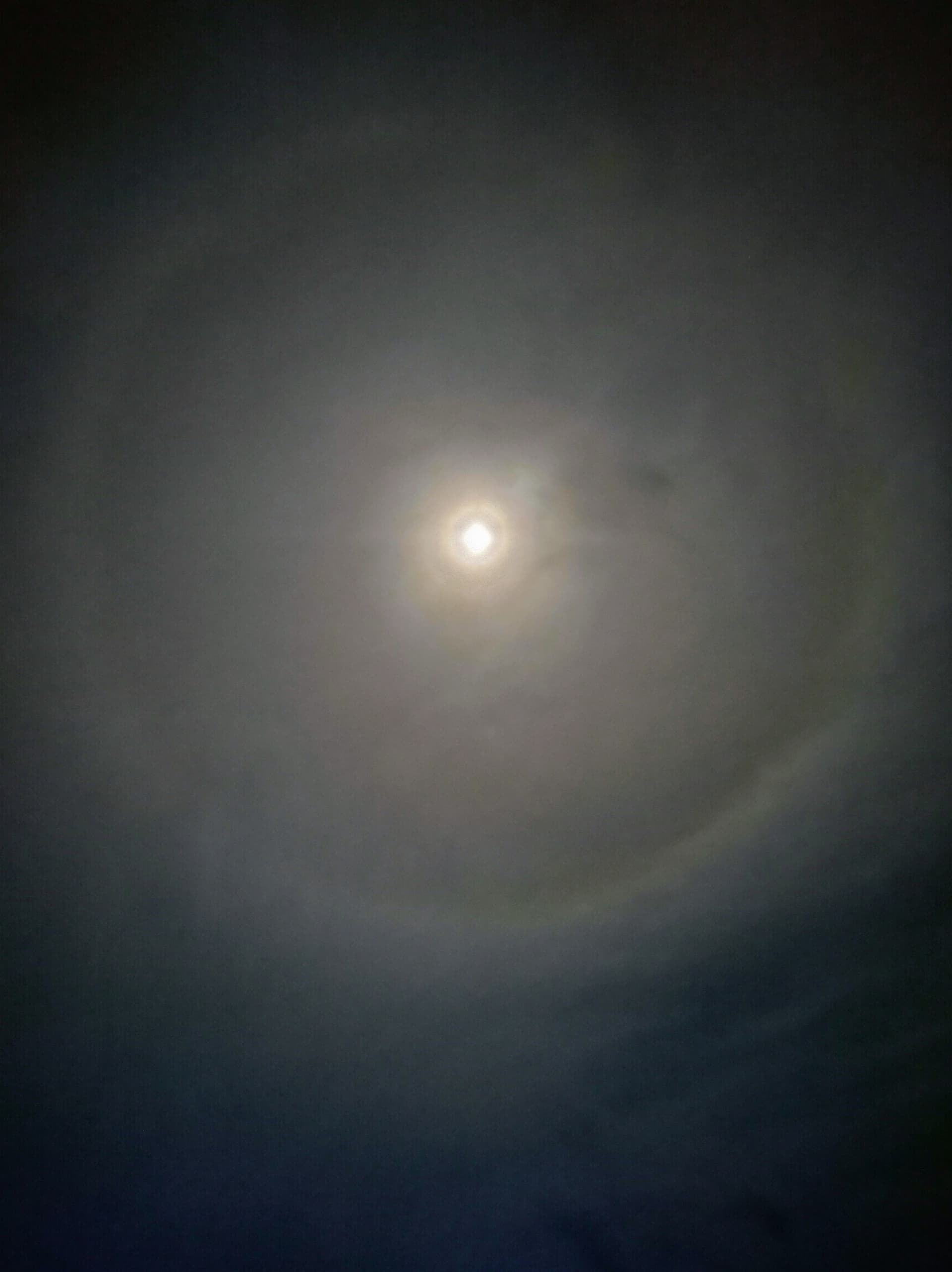 its halo effect around full moon. usualy its very narrow and yesterday it was really huge, never saw it like that before.