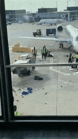 Gotta commend that guy, solution oriented, stopped the cart, saved the nose of the plane! Good work!