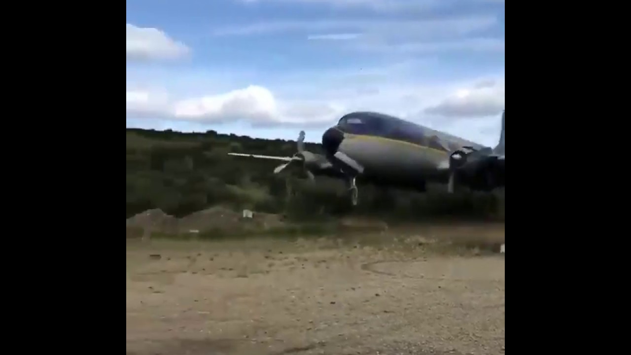“A Tatonduk Outfitters Douglas DC-6 on behalf of Everts Air Cargo, registration N451CE performing flight VTS-25 from Fairbanks,AK to Candle,AK (USA) with 3 people on board, was on approach to Candle’s runway when the aircraft struck a berm causing damage to the landing gear. The aircraft continued the landing.”