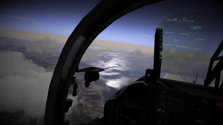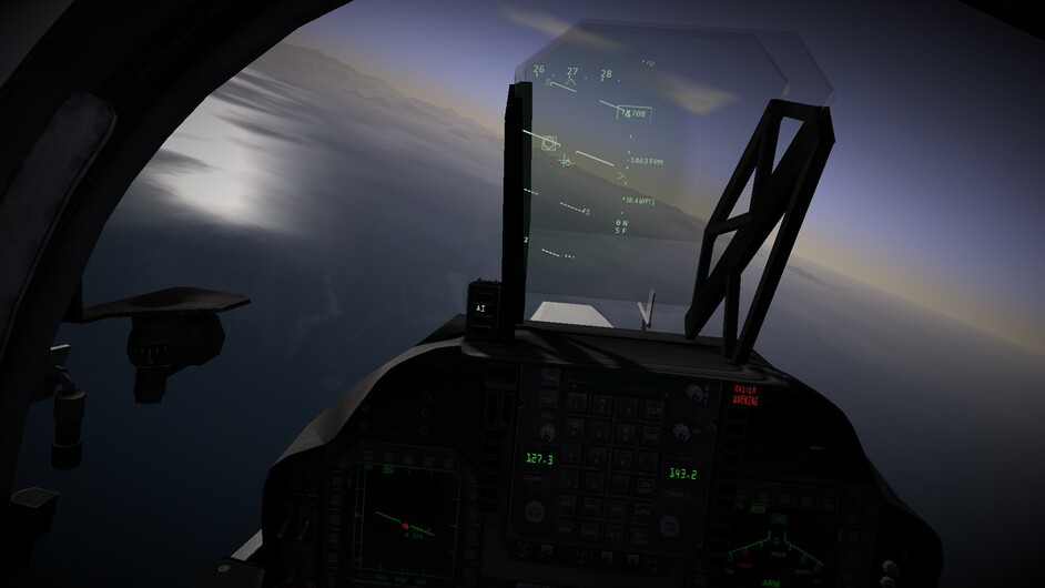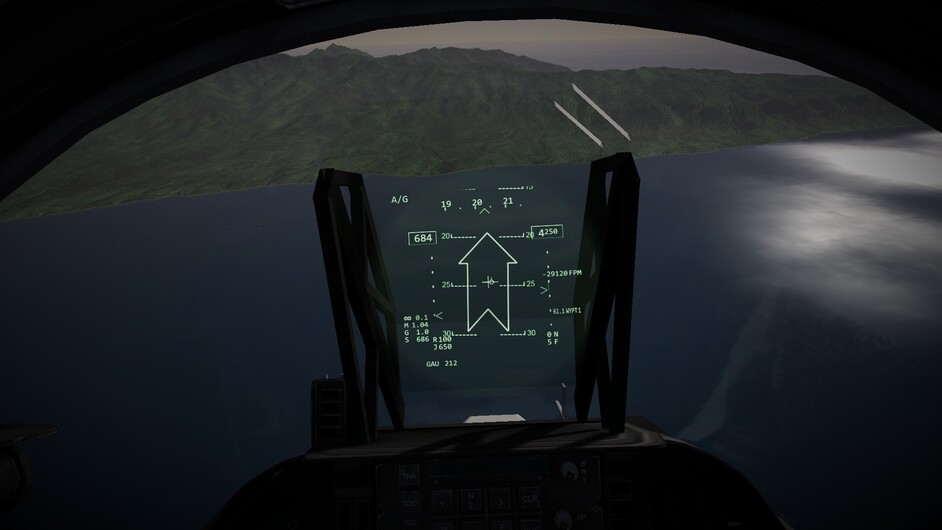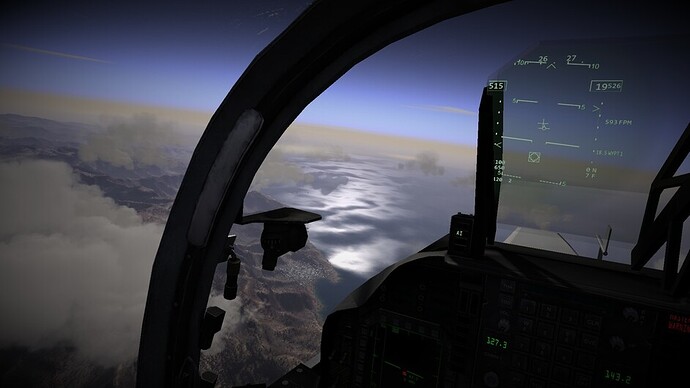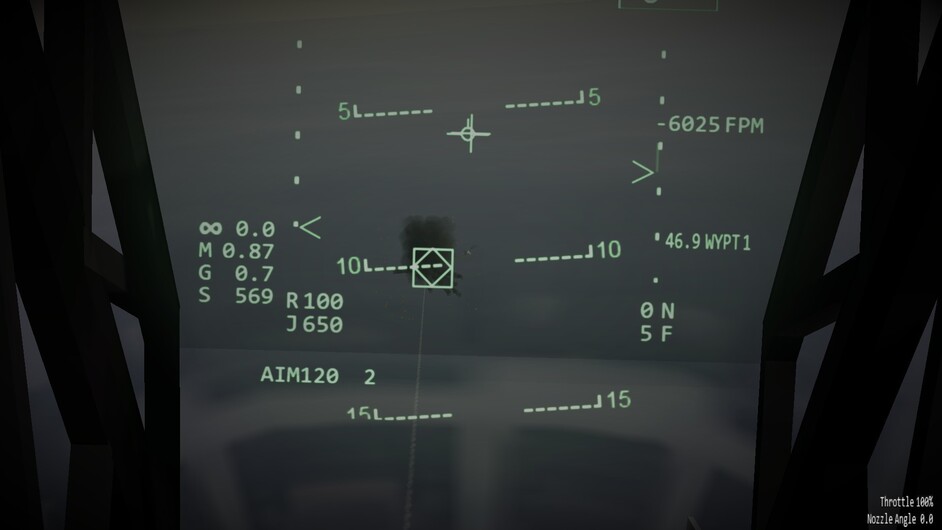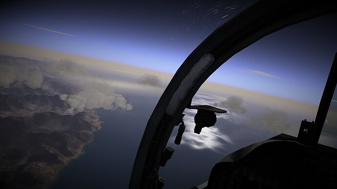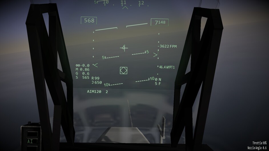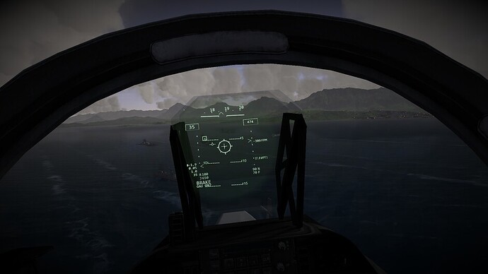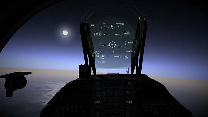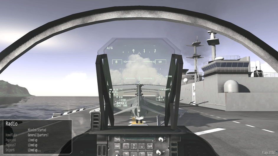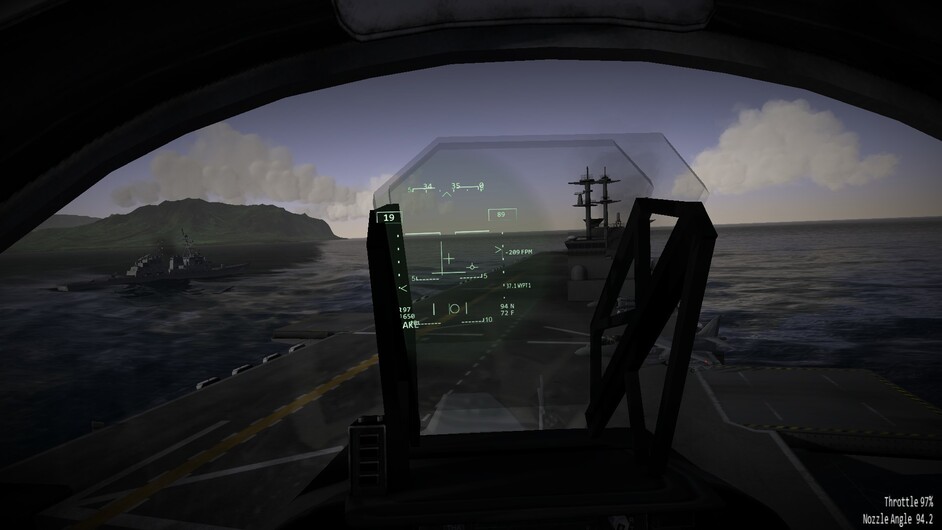 Before we go any further. I’d like to note that there are 3 difficulty levels for hovering. At the easy and medium difficulty levels the throttle becomes a request for vertical velocity. Allowing you to control the rate of climb or descent, or sustain a certain altitude. You can use the stick to control your movements in the remaining two axis. In the most difficult mode, the nozzles become just a vector of force. If you pitch 10 degrees forward while the nozzles are pointing straight down, compared to the harrier, then you will start inducing forward motion as well. You may also see an increased rate of descent as not all force is directed downwards too now. This is the most realistic mode, and the mode I’ve been flying in exclusively so far.