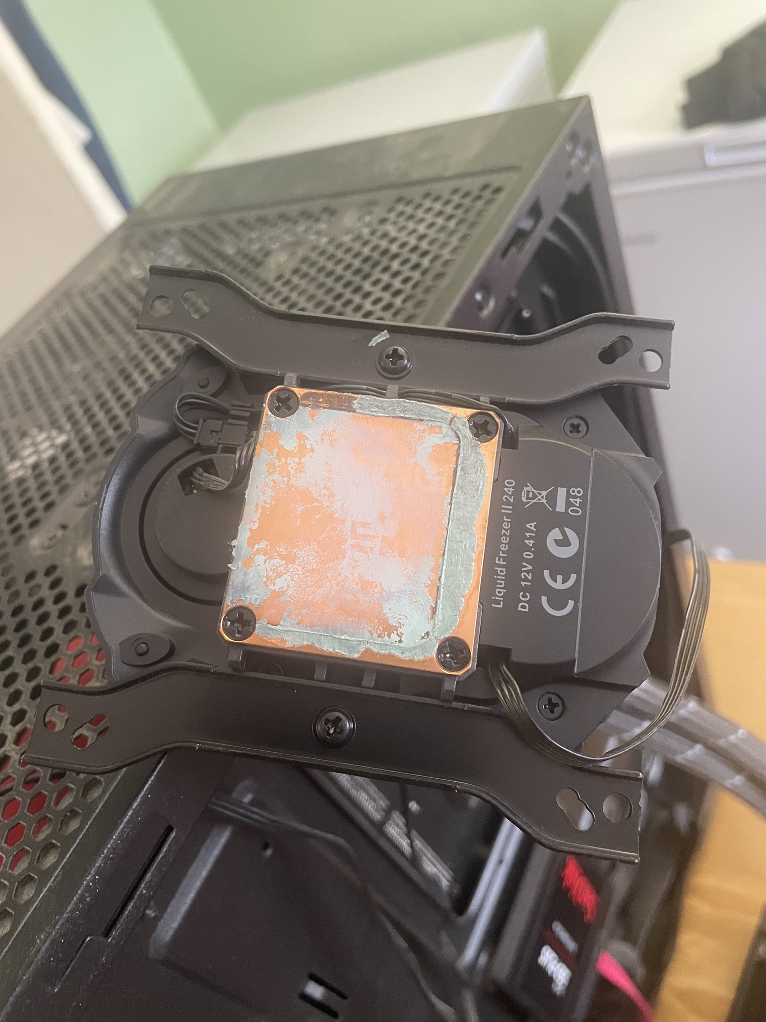 When I fitted the AIO cooler i just left the pre-applied thermal paste, now I would totally recommend removing any of the pre applied stuff and adding your own