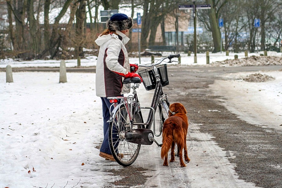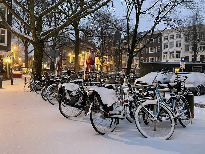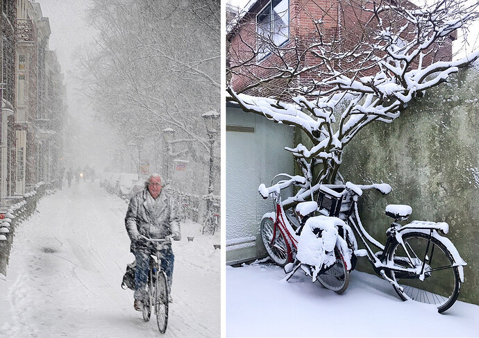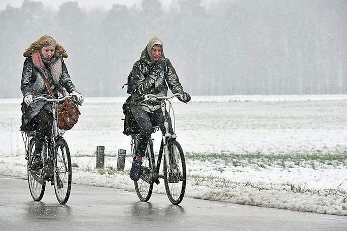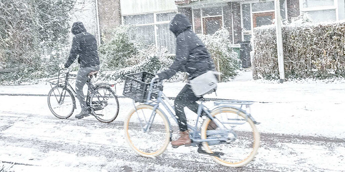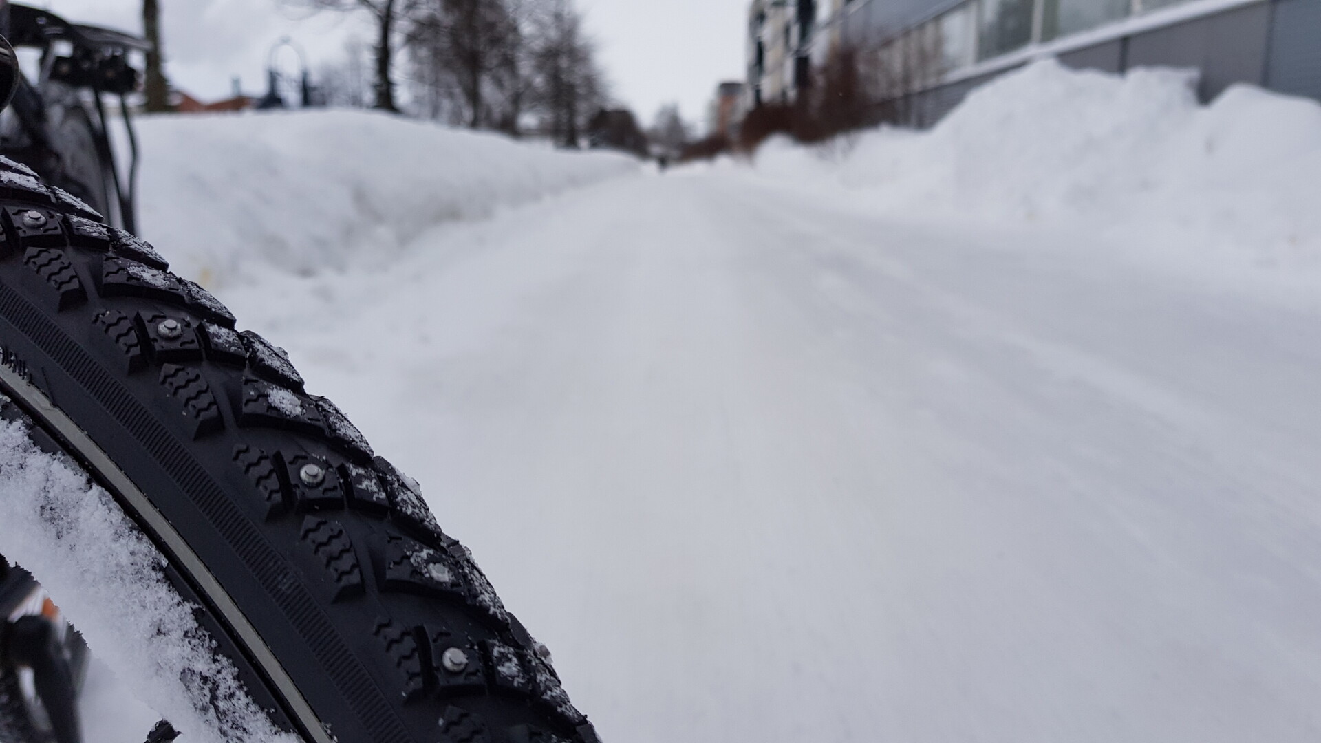 @wheels. Last week when the snow came, there at first was some black ice. Walking, cycling and driving on black ice is actually impossible, however with a 2nd layer (snow), it was doable.
