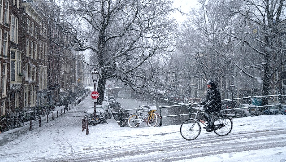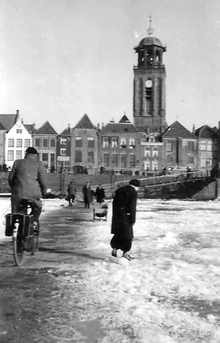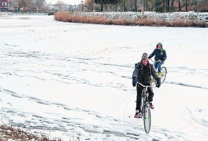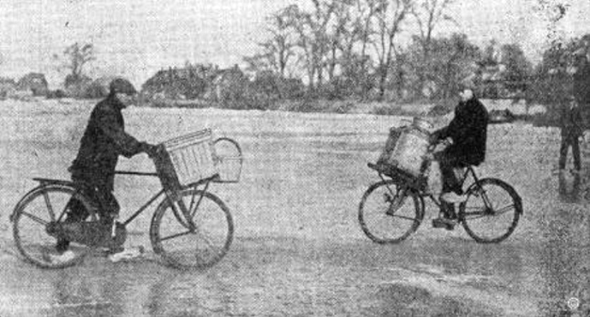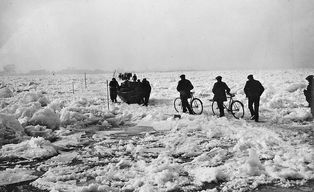 In those days it was very common to use frozen lakes, ponds, canals and even rivers for commuting, deliveries, etc. by bike. These waterways were then frozen during a long period.
