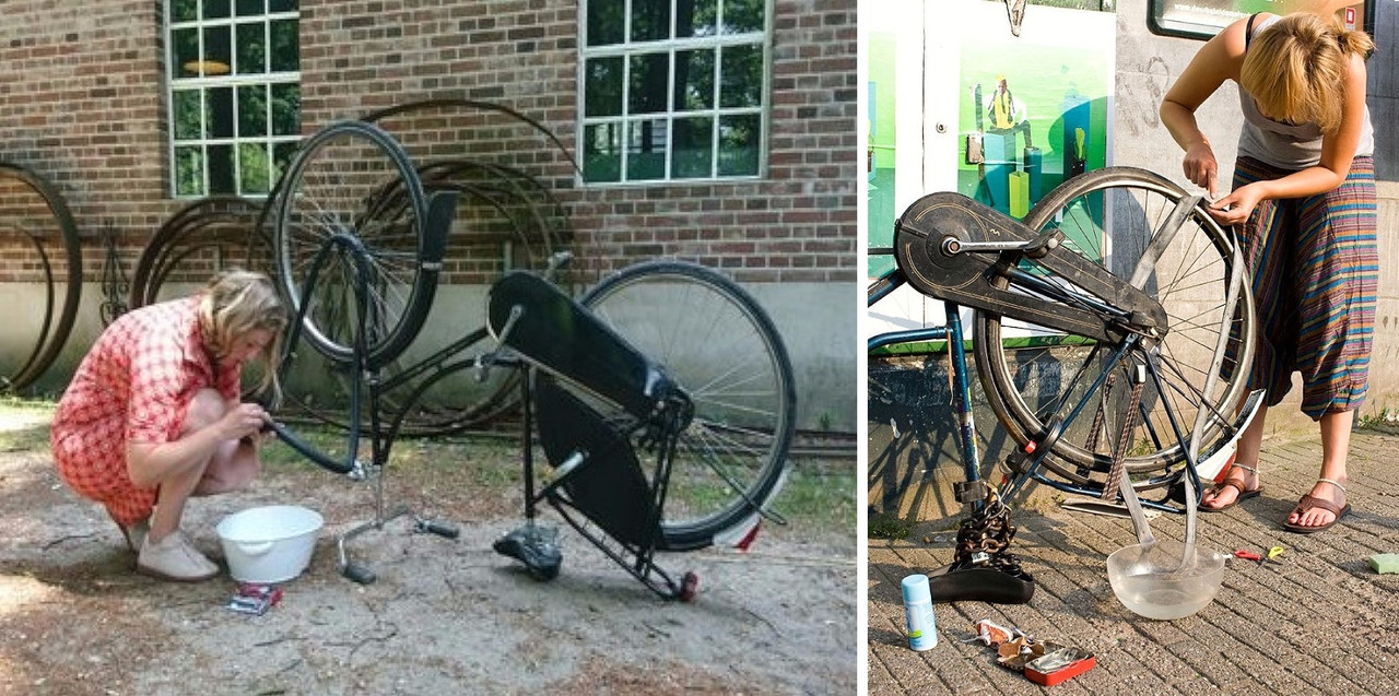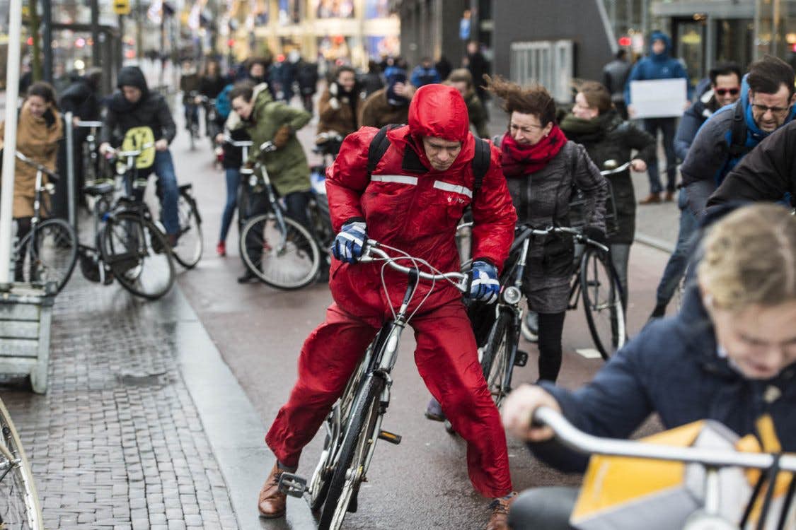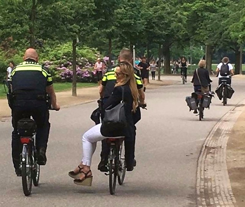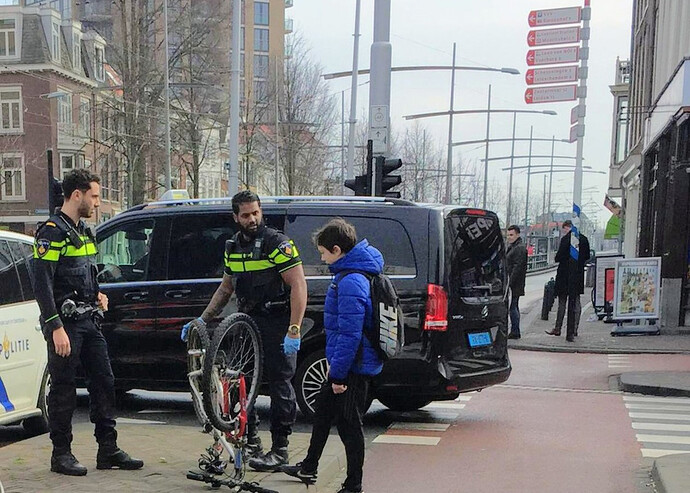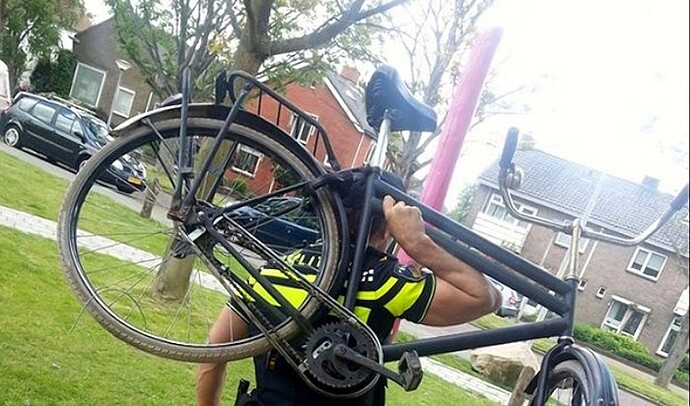 A cop with a so called bait-bike, to catch bike-thieves. They can track this bike as soon as it’s stolen (by mainly gangs from Eastern-Europe); with a 100 % chance of being caught.