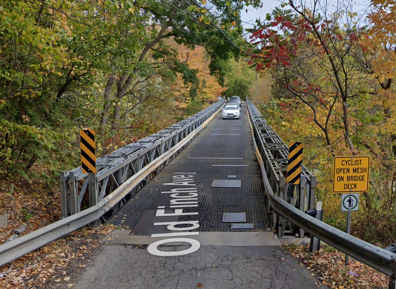 This bridge nearly killed me one rainy afternoon over thirty years ago. You come aboard it pretty hot off a downhill slope. I learned pretty quick there is ZERO traction when it’s wet …