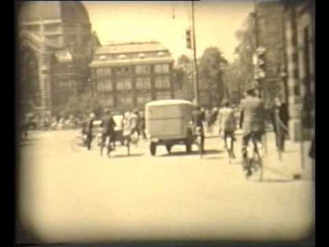 From the scapbook: on the left, my grandfather on his Gazelle Tour Popular upright bike commuting in the 50s, and en route crossing a frozen river (he liked this short cut):