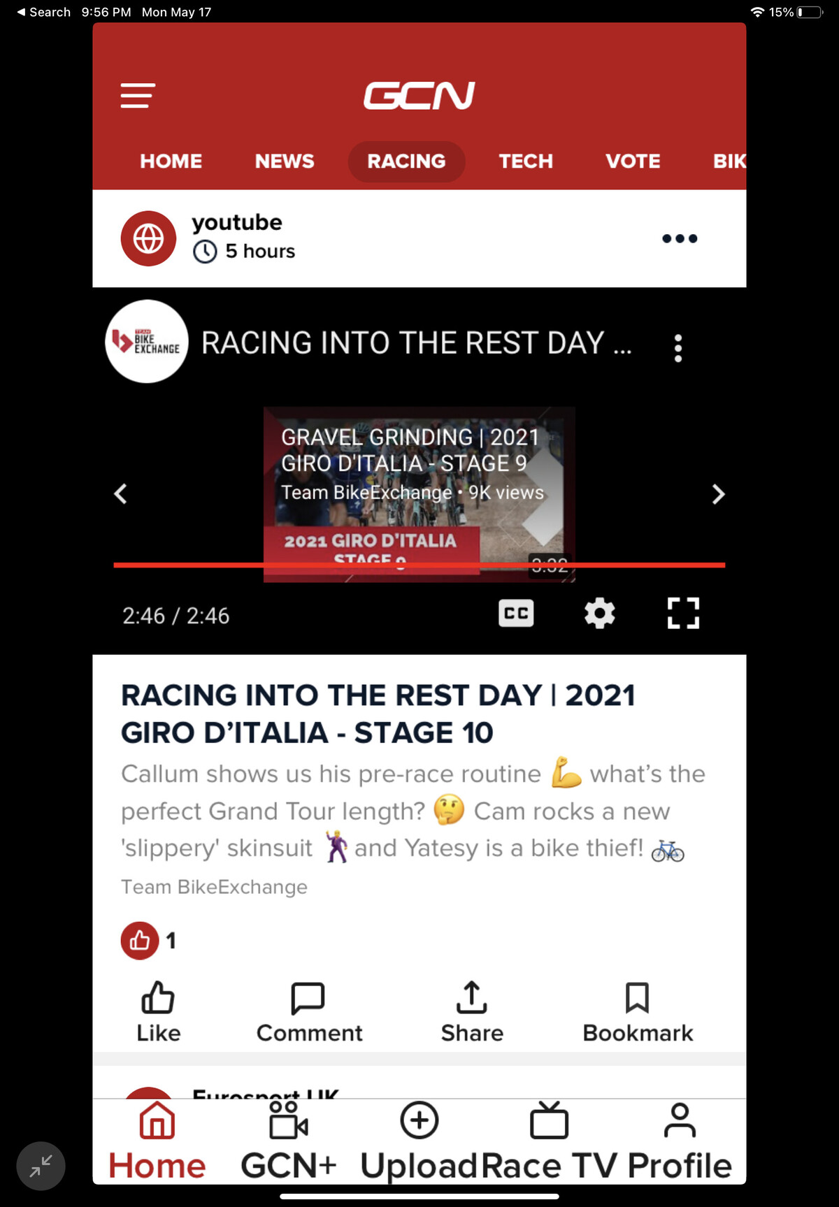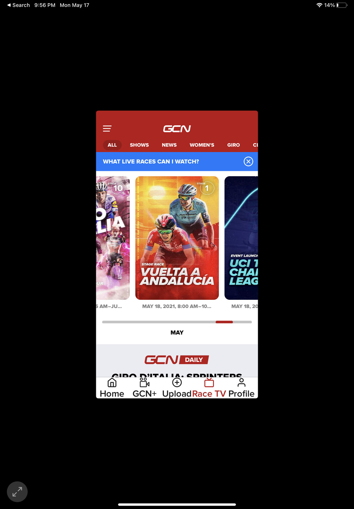 GCN+ is the only way I know of. I installed the app last week, but have been so busy with work/family that haven’t had time to dig into it. Having said that, as much as I love watching the Giro, there doesn’t seem to be the usual star contingent as in previous years. On the other hand, if you haven’t had time to watch the replay of this year’s Fleche Wallonne “semi” classic on NBCSN, it’s really great.