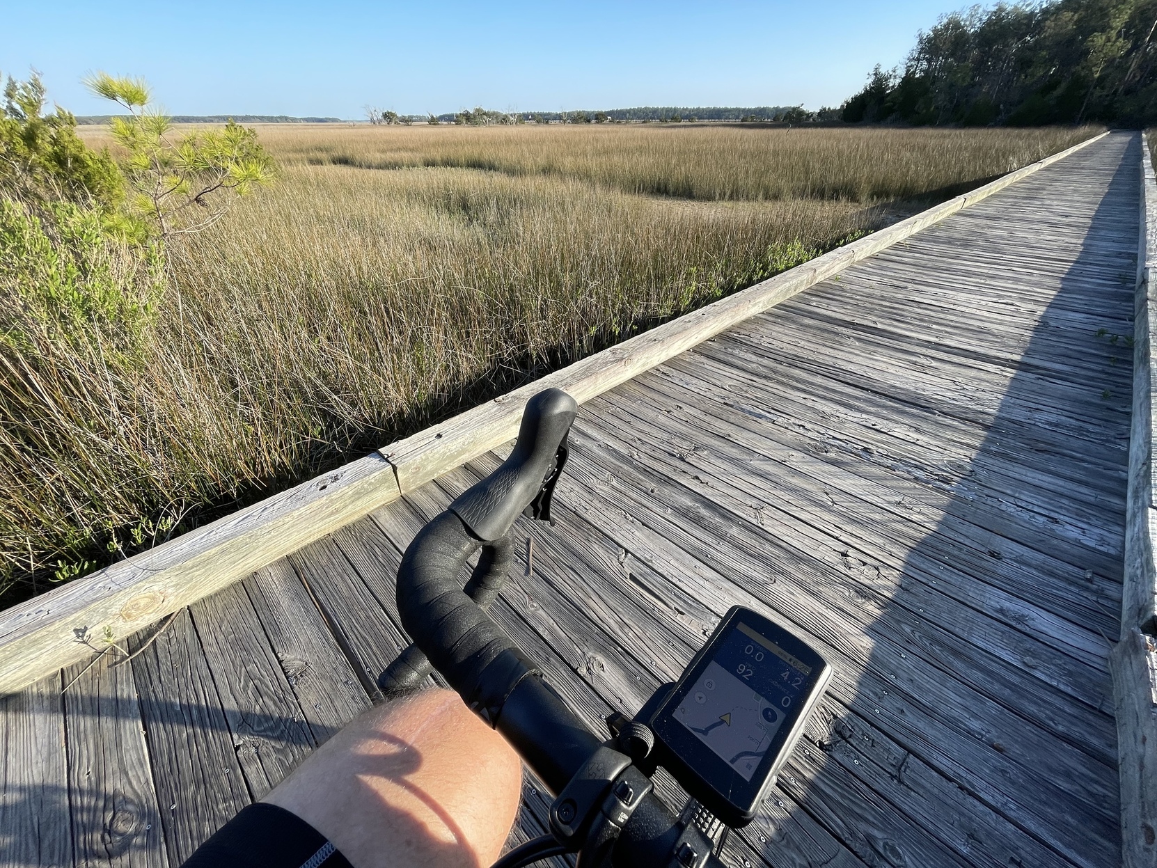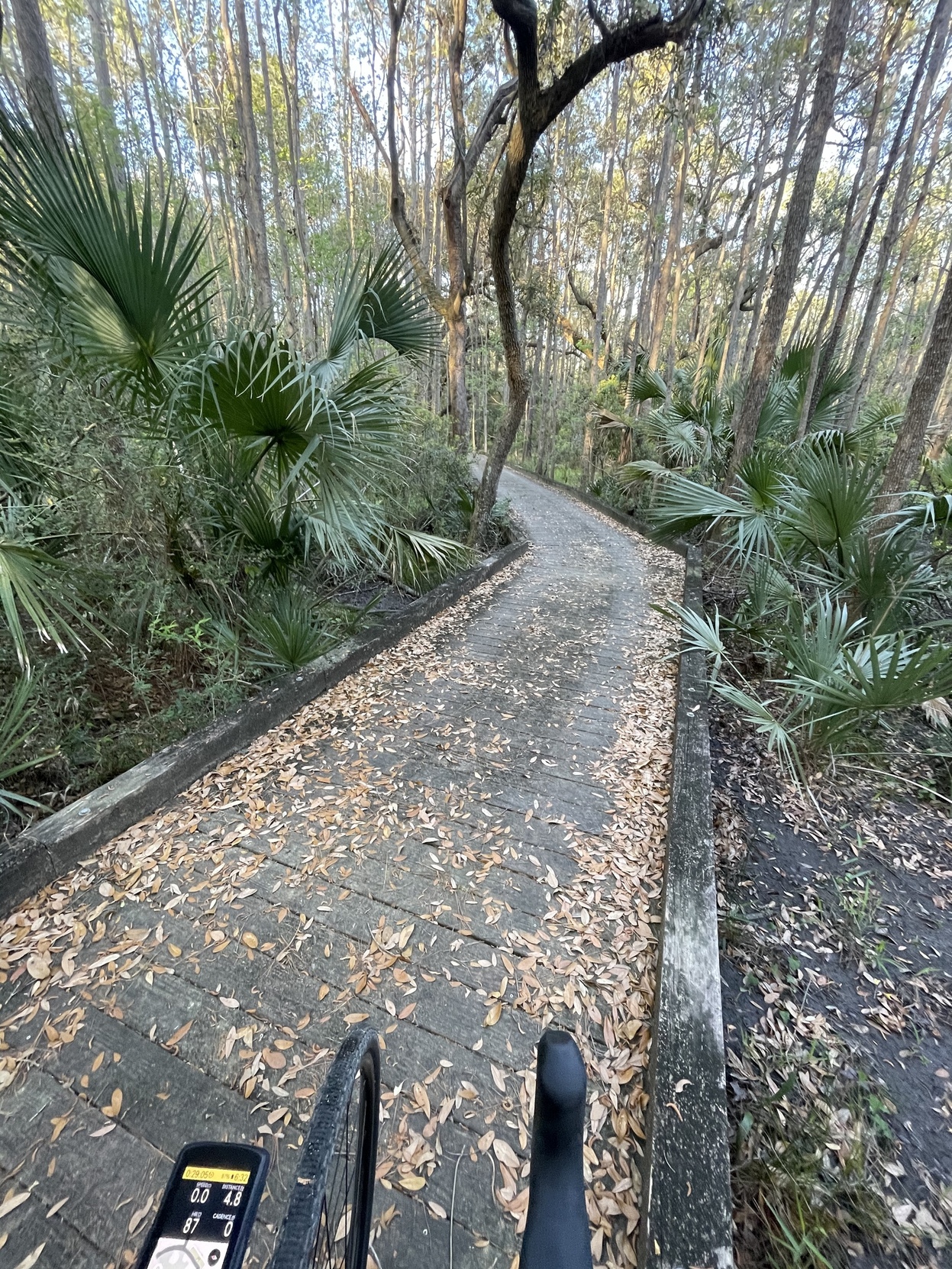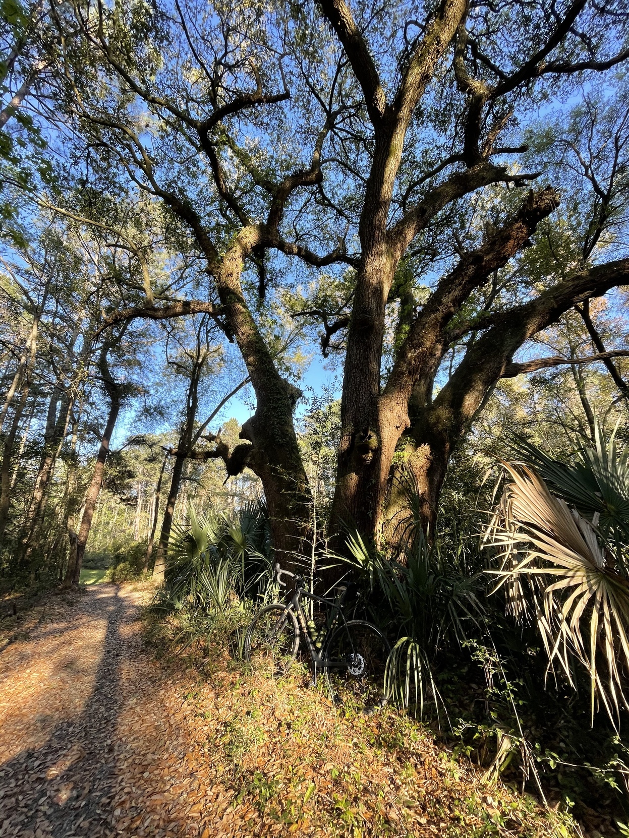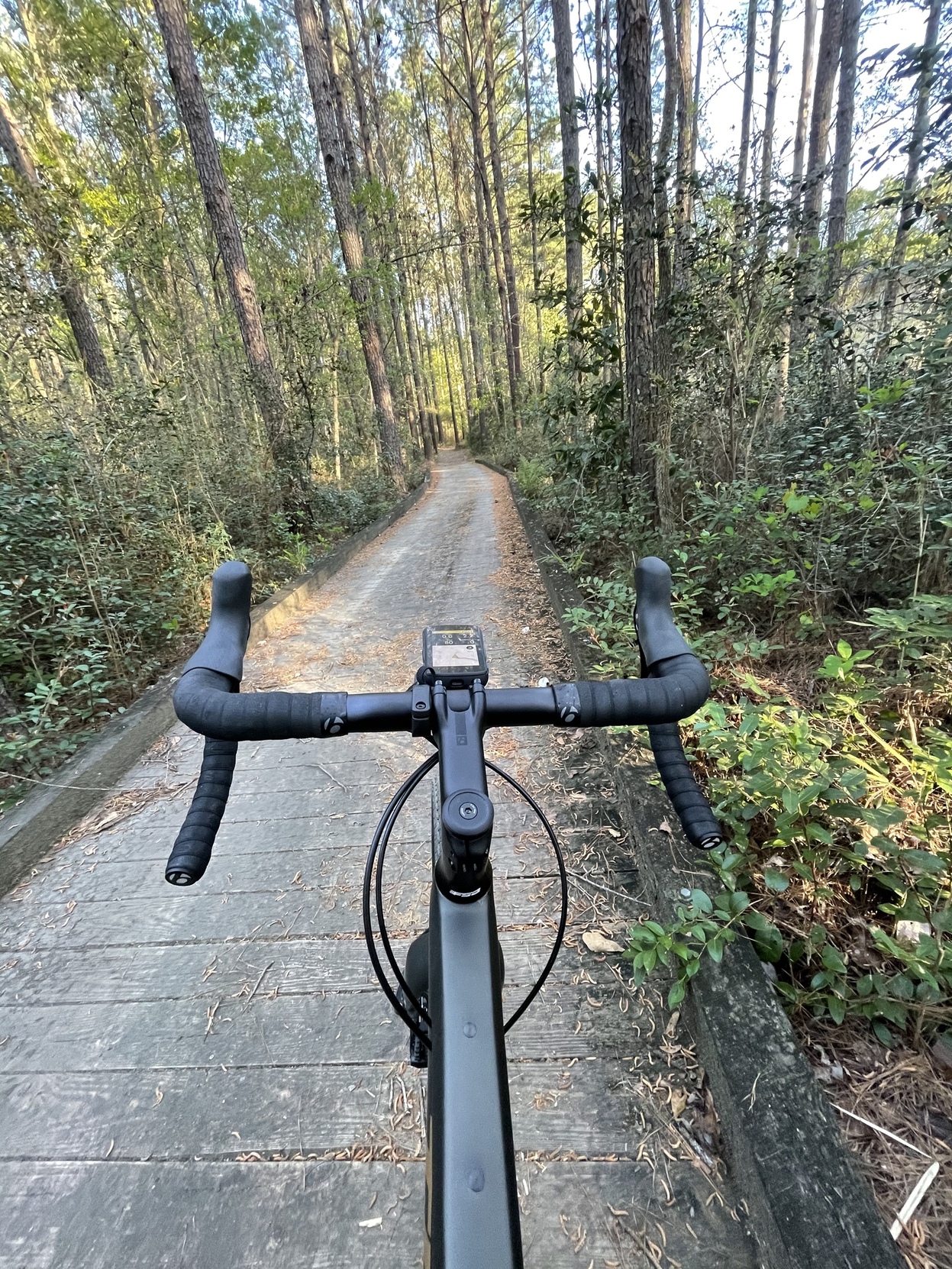Took a wee gravel ride in the late afternoon. I had been doing yard work and was pretty tired, but the day was just too nice to give up on. Our gated community has some beautiful trails among its 600 acres, and I now have the right bike to explore them.