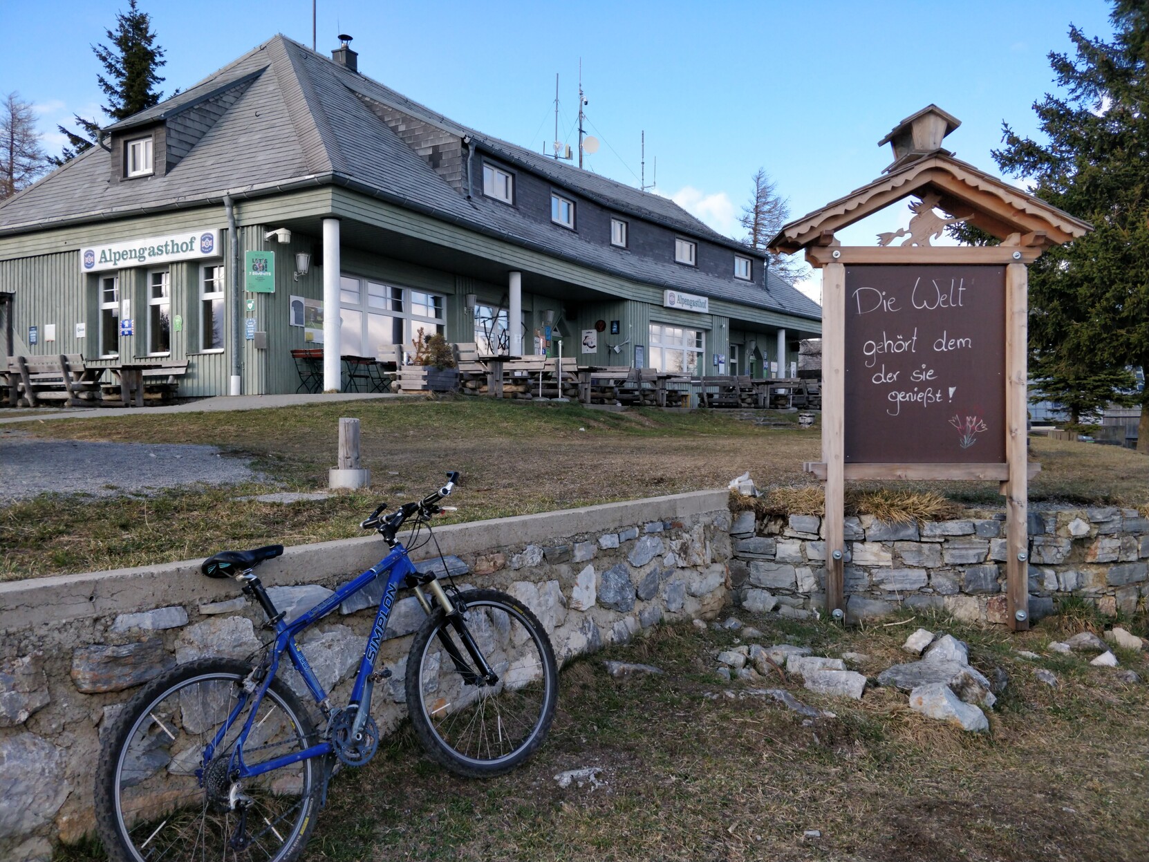 In perfect April fashion, there was moderate snowfall at the peak, and I forgot my long gloves at home. Riding down was not pleasant.