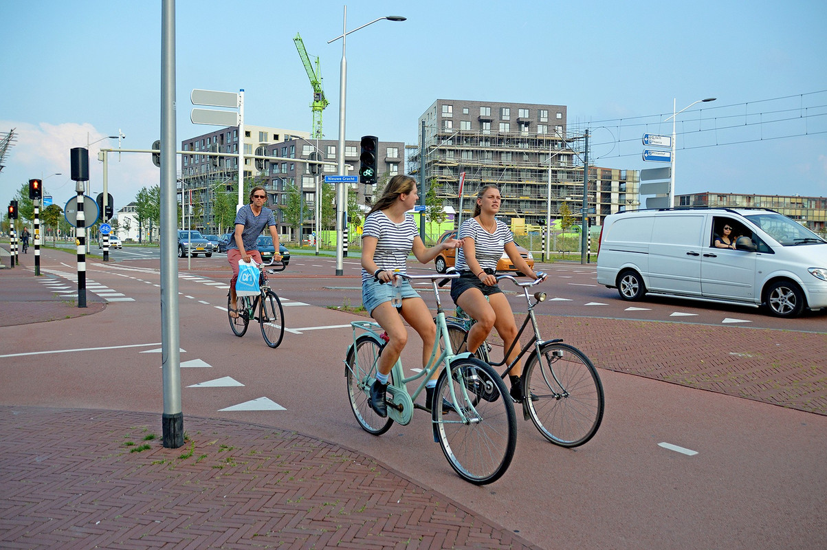 Example of First-World (= people-centric) infrastructure: seperate cycle lanes trigger “dressed for the destiny, not the journey” too…