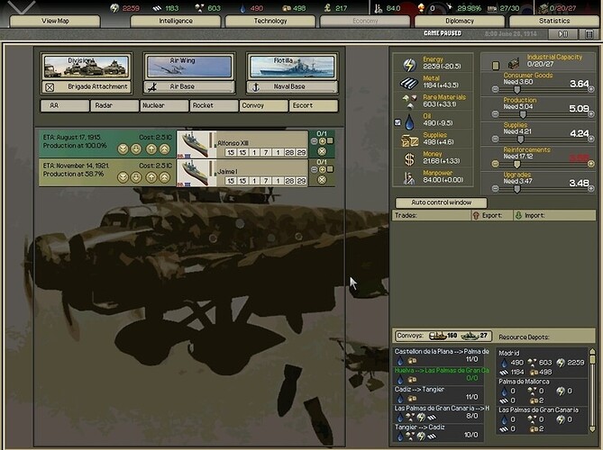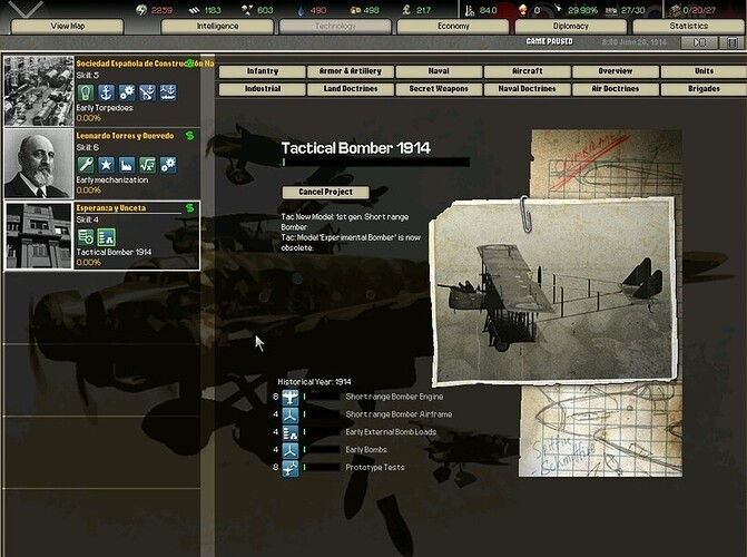 So, on the eve of the great war I’ve opted to put some research into naval and avian warfare given that I look woefully unprepared compared to Britain and France… They keep paradeing their fleets up and down the Iberian peninsular coast!