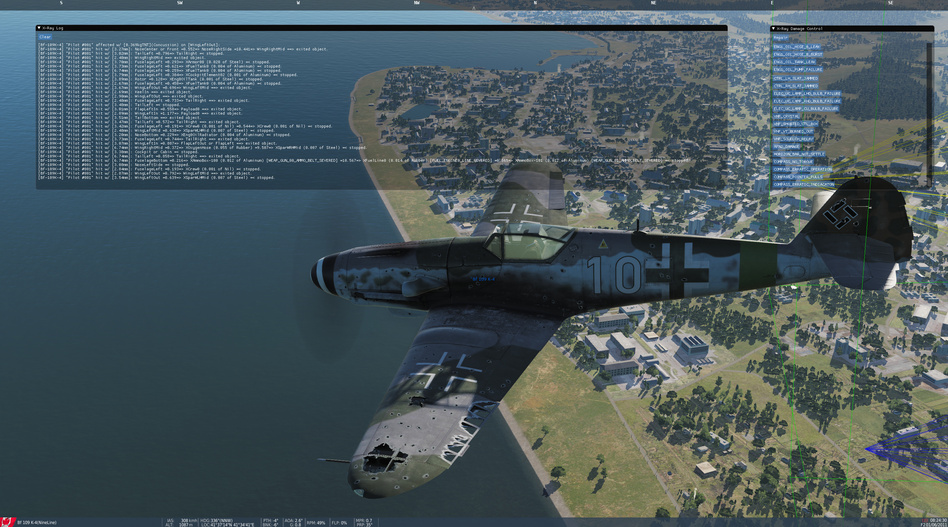 Our AI aircraft will also be tuned appropriately and this work is ongoing. We have also added some great tools for testing the damage model on our internal builds. With these tools, we can track the trajectory of hits, shrapnel and damage suffered. In the attached screenshot, you can see the result of a testing session with a Me-109K-4 vs some Flak fire. In the X-ray log window, you can see how different hits make their way into and in some cases through the aircraft. In one instance, an object enters the left tail and stops in the right tail. While the graphical representation isnât the exact location, on the aircraft you will see damage entering at this location, but not exiting on the other side. In another case, you can see objects entering the wing tip, and exiting the middle of the wing. Again, the damage would show on both sides of the wing, based on objects entering and exiting it. As well, you can see how an object entered one Ammo Box, severed the ammo belts on 2 guns, as well as severing a fuel line before stopping in a second ammo box. If you were to use those guns, you would run out of ammo before the indicators showed you did. You can see by the log data that we track the path of the object, the material and/or items passing through it.