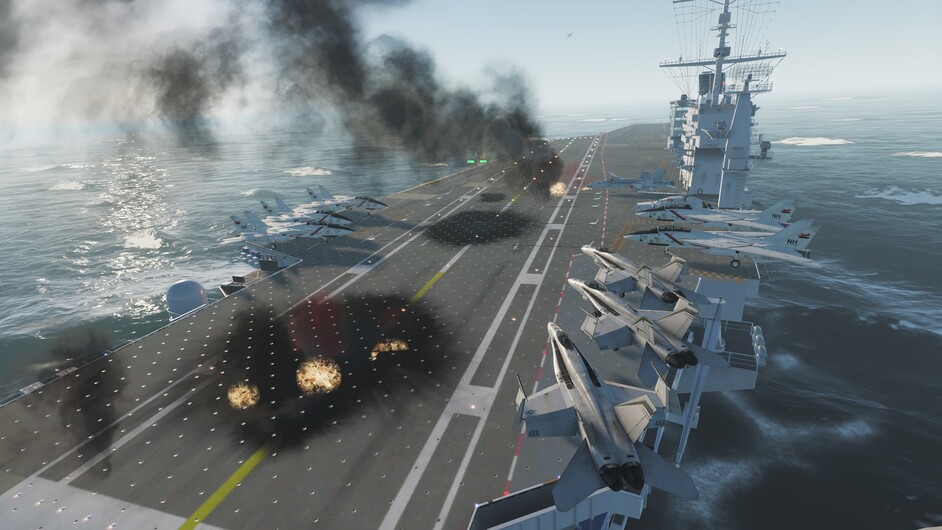 his aircraft right into the deck, starting a couple of decent fires and likely causing the deck crew to shout out in celebration, throwing off their shirts and rolling out the hot dogs and marshmallows. While this is going on, an S-3 approaches and, upon seeing the carnage, gives a loud “Eff this shee-yiiittt, I am