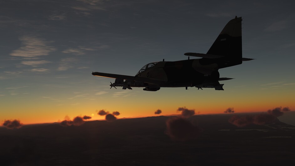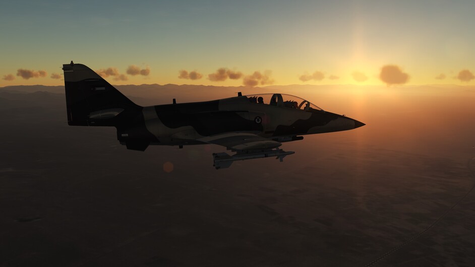 Played that mission I had uploaded to MudSpike. It has been a while. This is the second mission where you have to get to the AO before sunset in order for your AI wingmen to see and identify the targets and kill them. Have to manage your AI wingmen. This time worked out well. Fun using the basic navigation tools getting back to the Airfield at night. No NVGs on this bird.