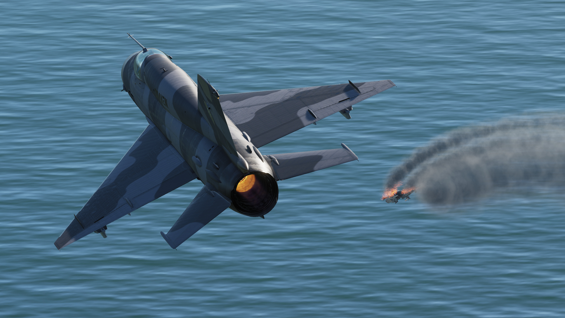 …the Mig21 is faster than the Hornet though, and he lost neither sight nor radar contact. He caught up and shot me with his gun. Super embarrassing.