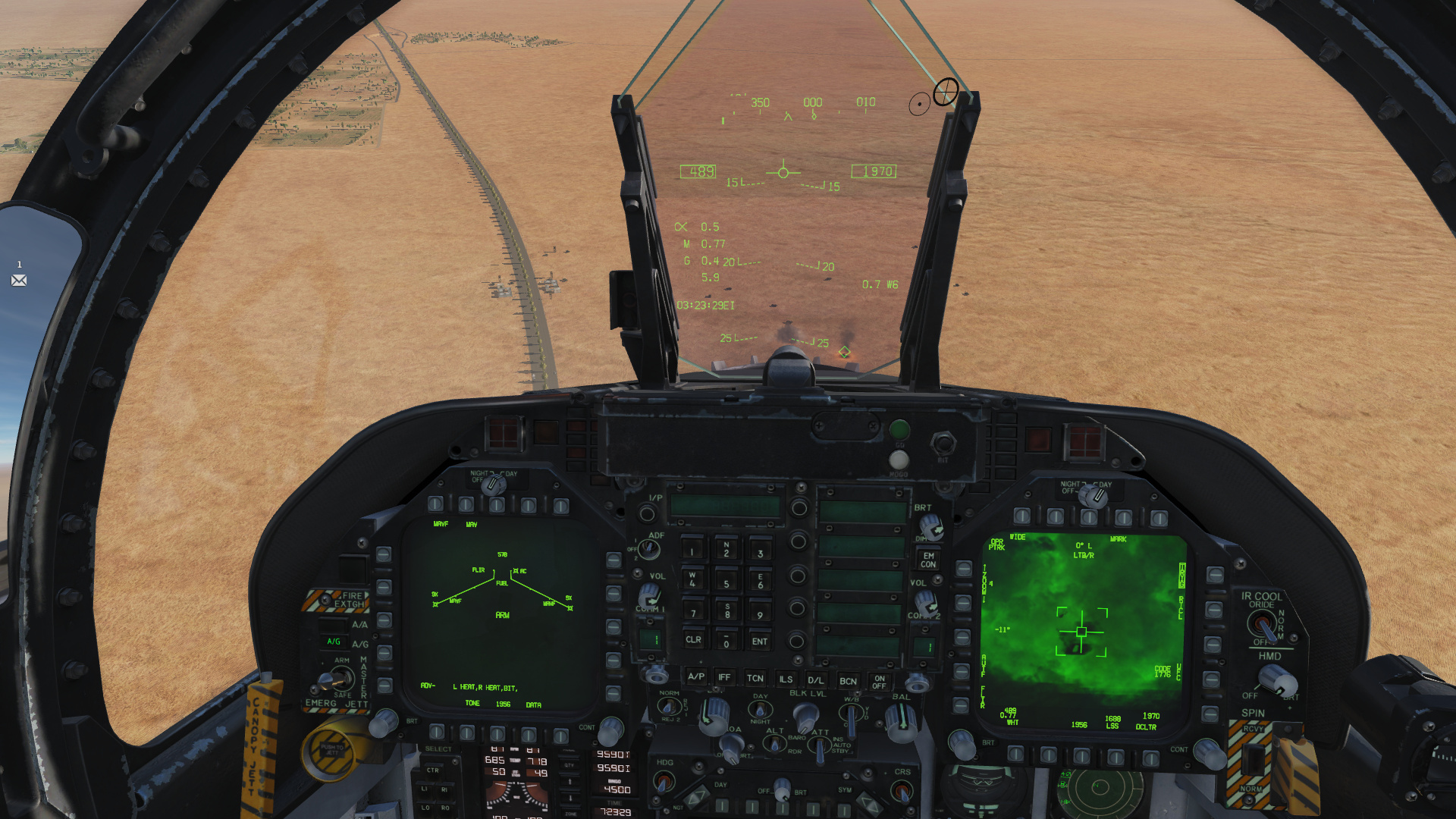 Marking a target with the TGP, and our IR MAV spooled up - an uncage results in the MAV going for the TGP’s target…how cool is that! I cannot slew it manually, nor does the RAID/FOV button toggle FOV.