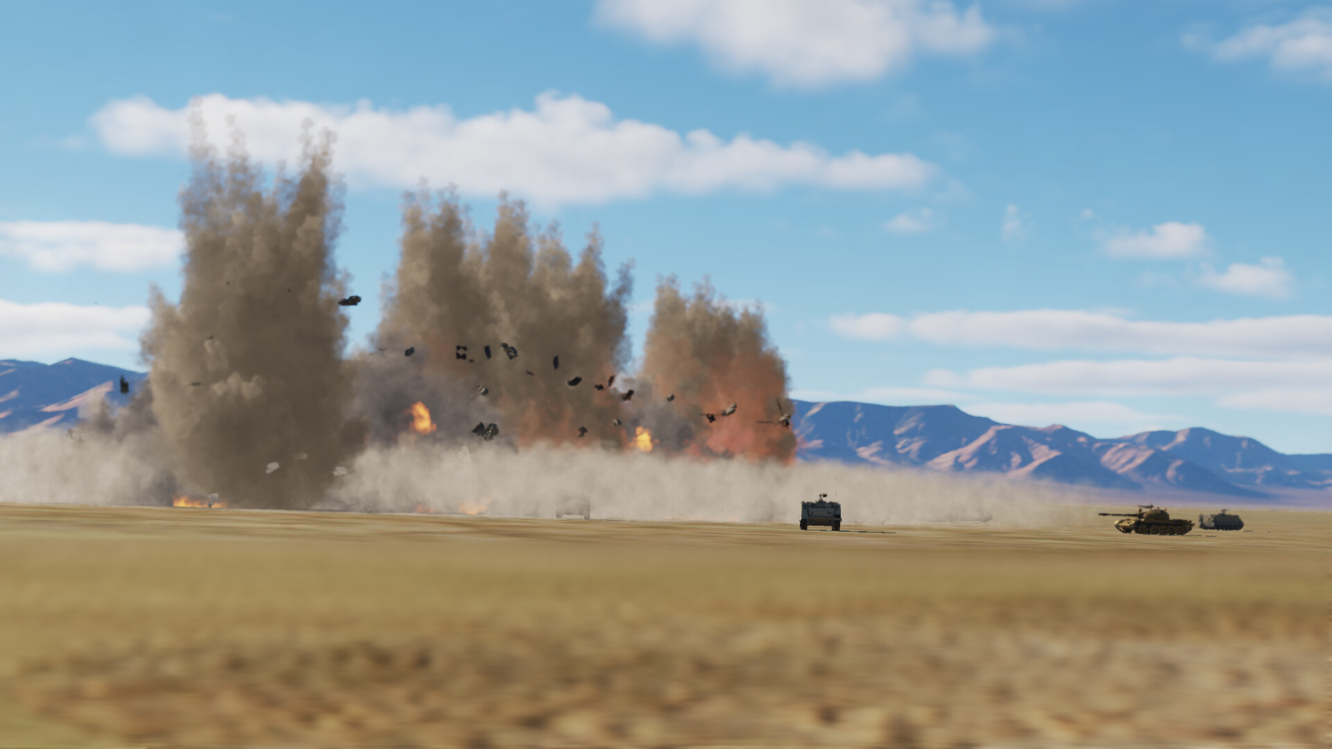 I’ve also noticed that those clouds and the new lighting seem to make things “pop out” more on the battlefield. Created a quick mission, had a nice heavy cloud layer with broken spots and was attacking some vehicles and buildings in a position along a river. Once I destroyed a few and taking a bit of time trying to initially locate them, the smoke plumes and fire of the destroyed vehicles really looked superb and helped with locating those additional targets in the area. I’ve read that other people have noticed it helps pick out aircraft as well highlighted in front of clouds though I haven’t tried that yet.