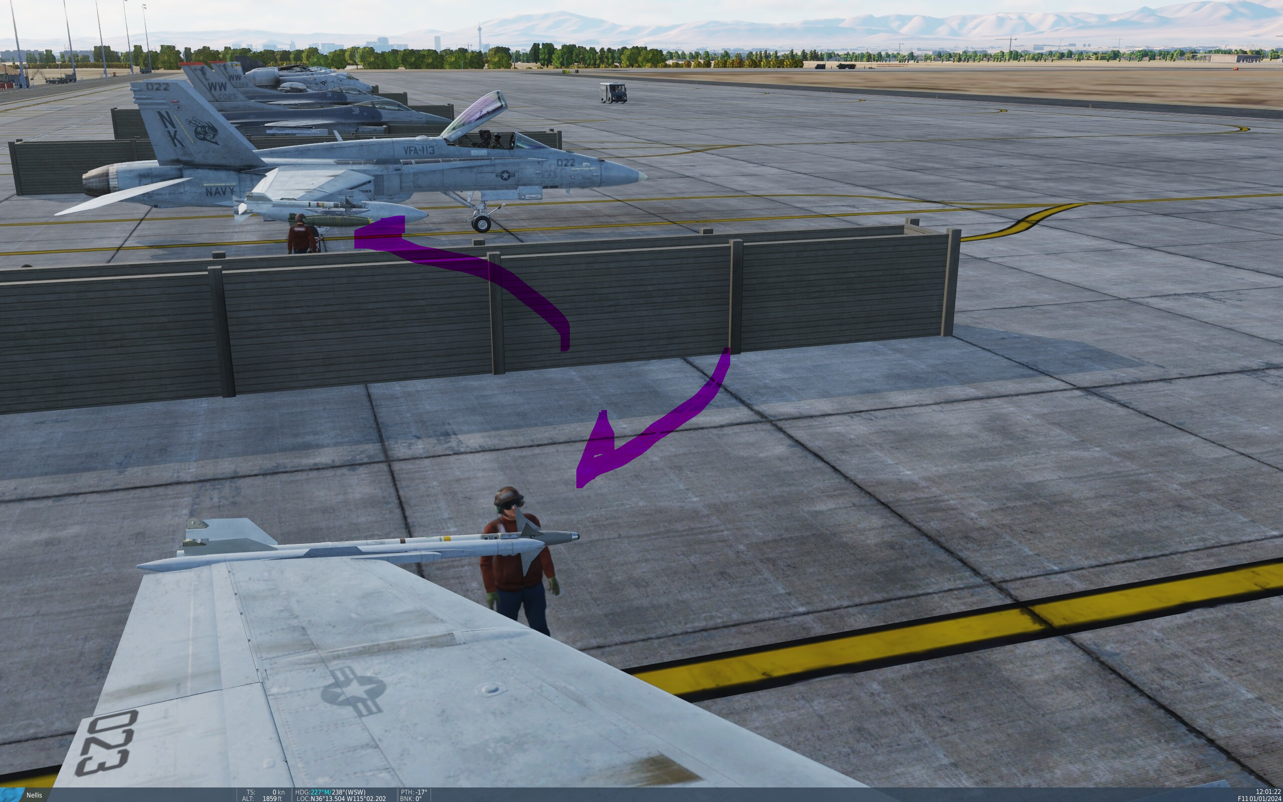 So, with the exception of the CV, I dynamically place these 2 dudes, dutifully standing by (they do animate a bit) your bird, and your wingman. Just a lil geometry on your position/orientation then spawn things, Viola.