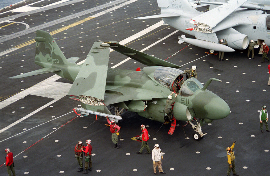 What I found points it to being a VA-165 aircraft in 1990. There were some experiments with camo paint at the time that was easily applied and removed, but I can’t find out much beyond that. Picture was taken on the USS Constellation.