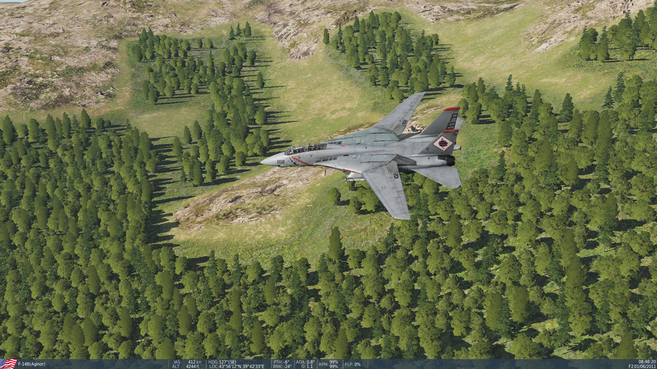 I have to say I love flying the F14. It’s powerful, can get squirrelly, lots of vibrations and buffet. The operation of the wings alone is a marvel, with the variable geomerry wings, slats, flaps and spoilers. It’s far more hands on to fly than the Hornet. Probably why you needed a crew of two to be truly effective.