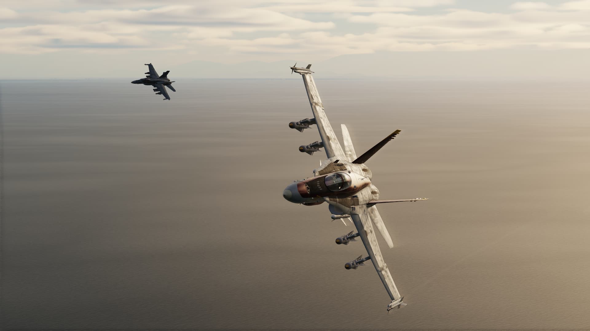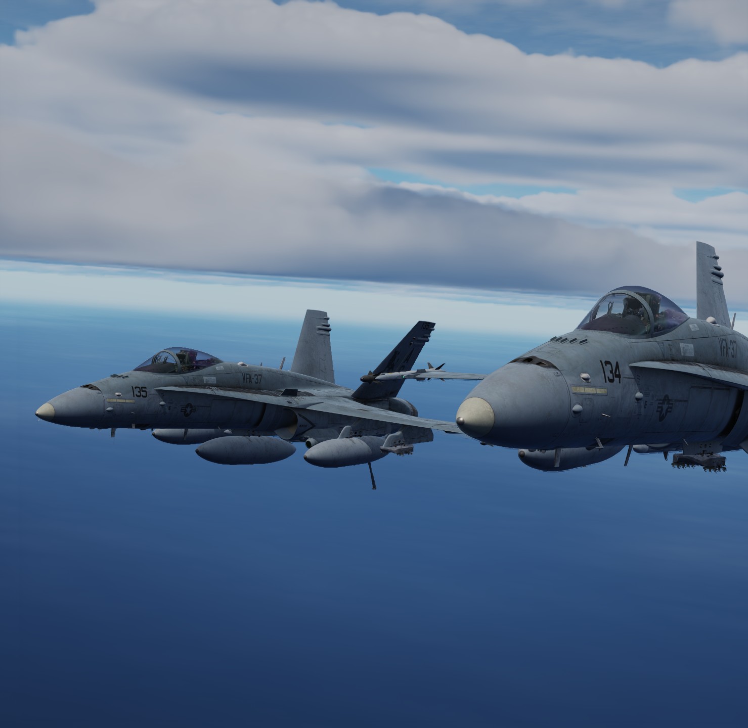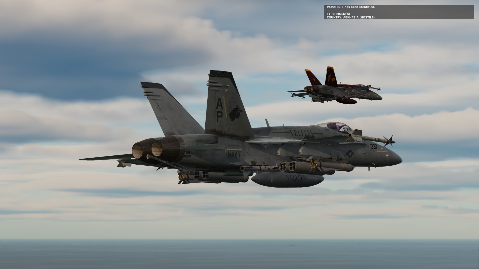 Popup of lead element, a two ship formation does a low level run and attacks with rockets.