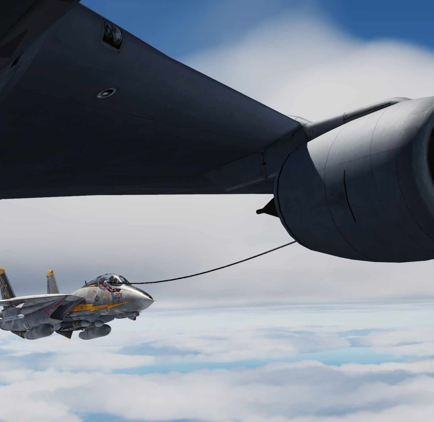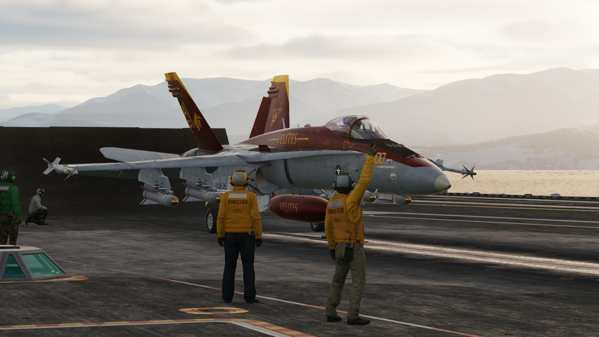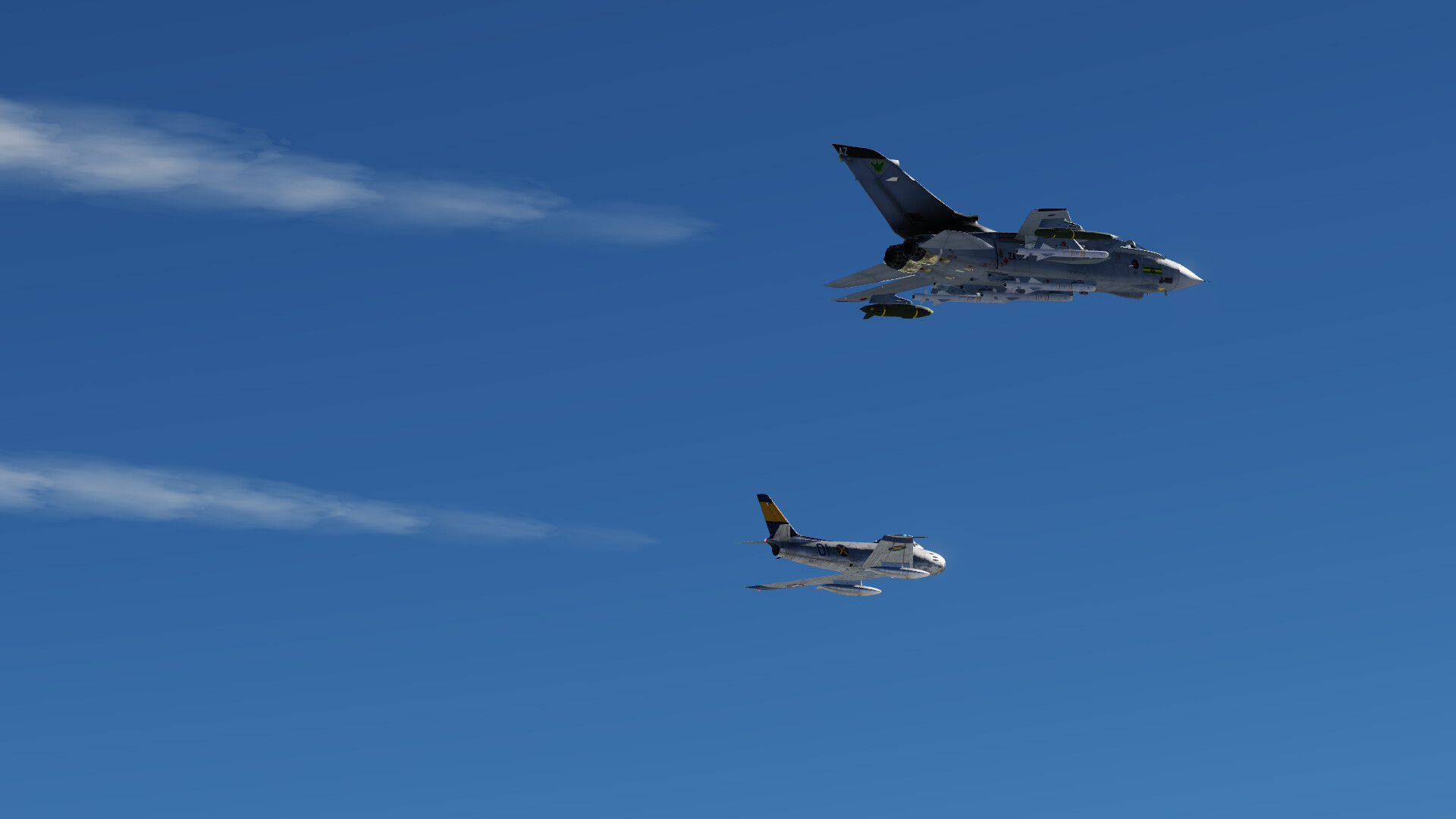 Popup of lead element, a two ship formation does a low level run and attacks with rockets.