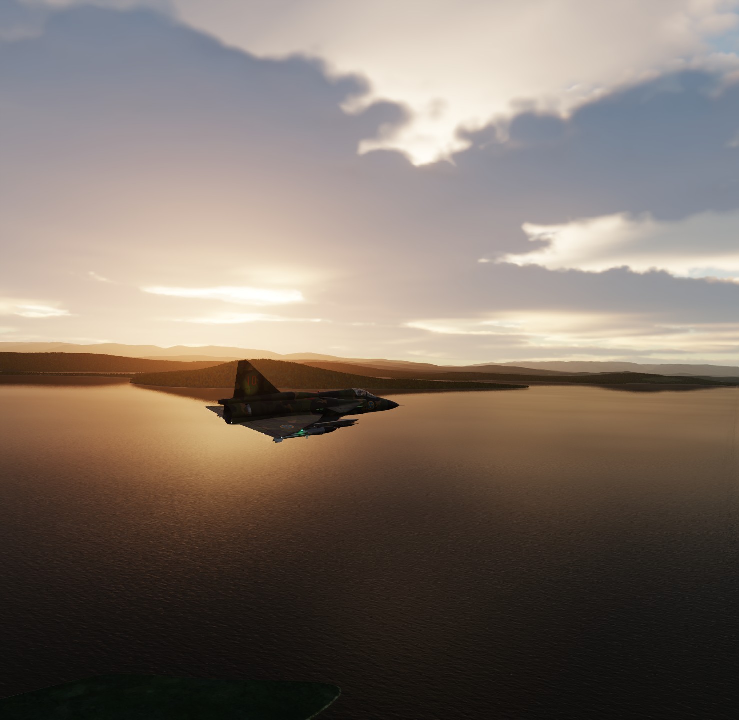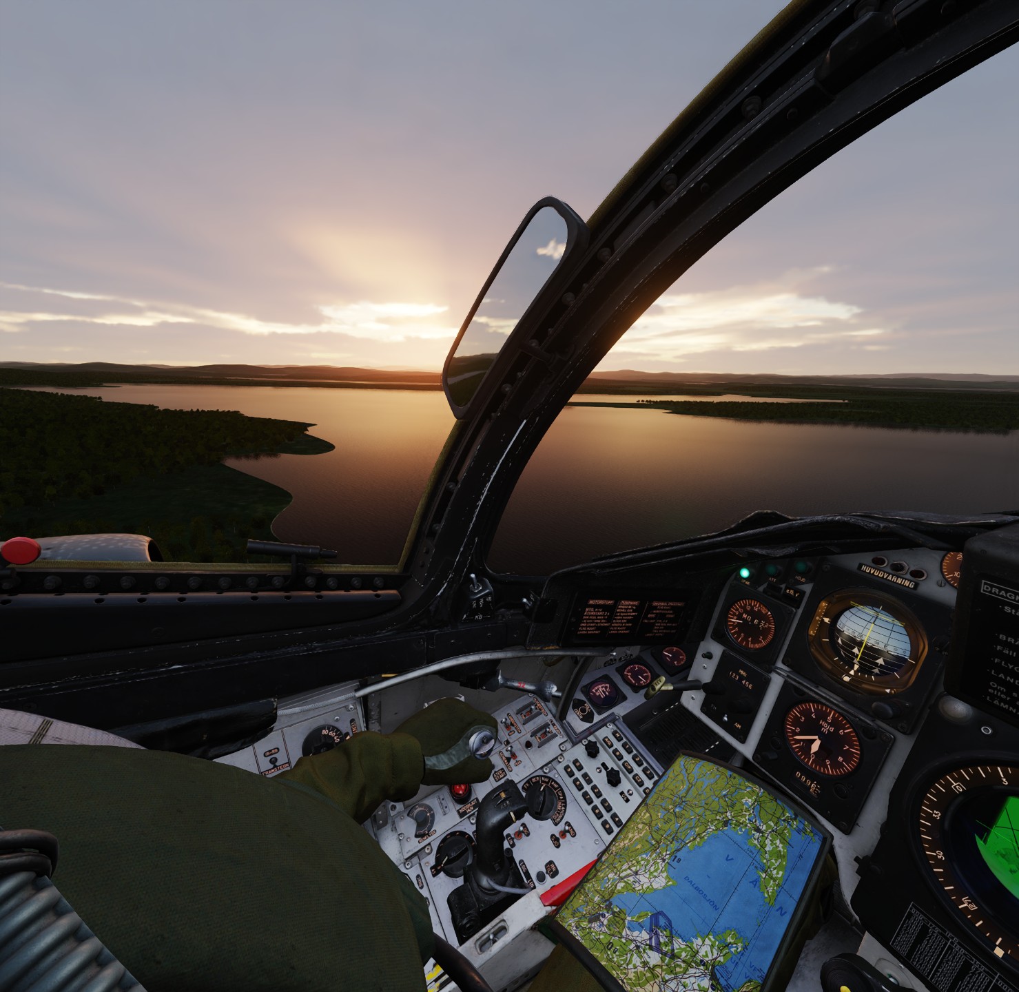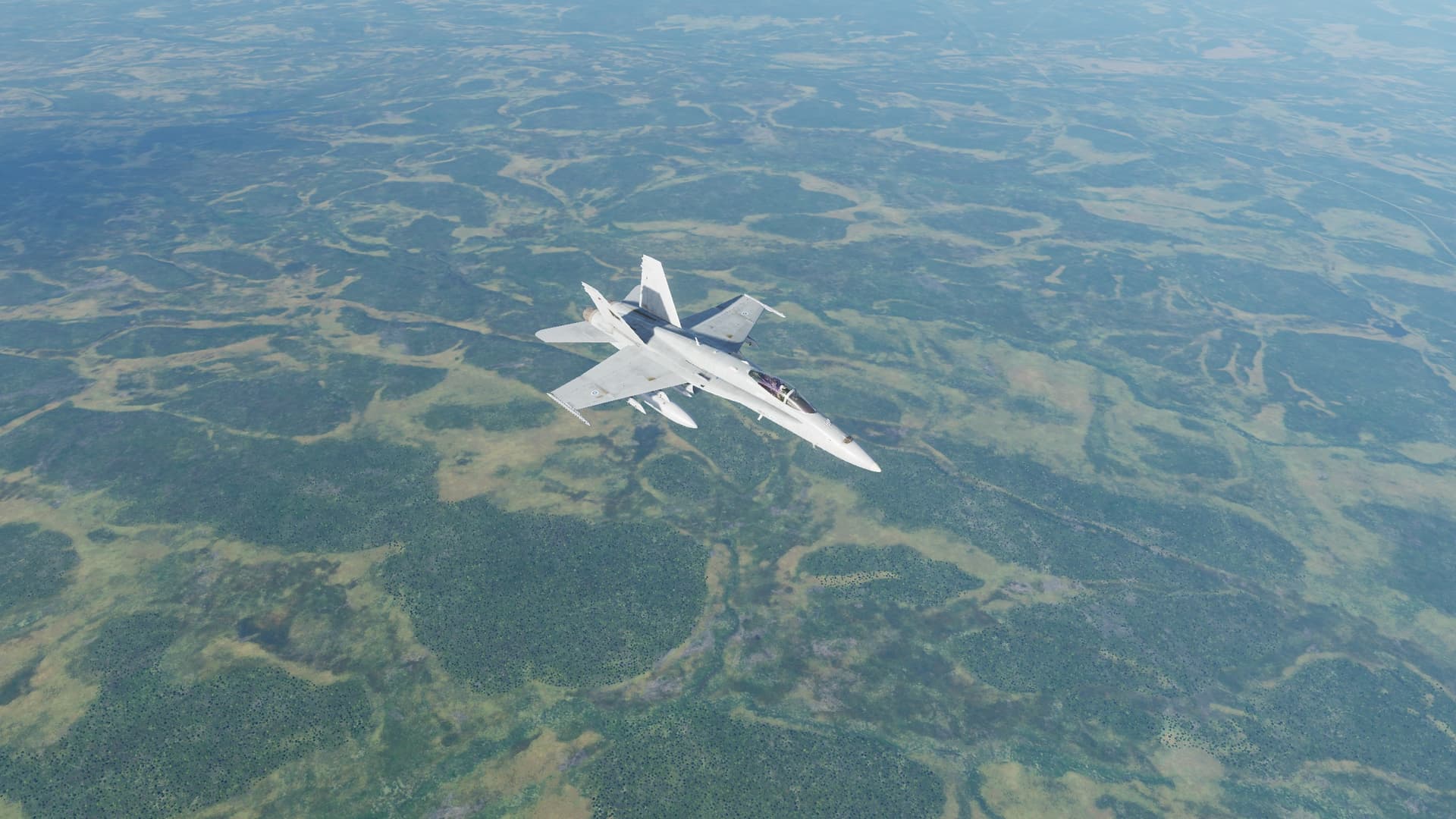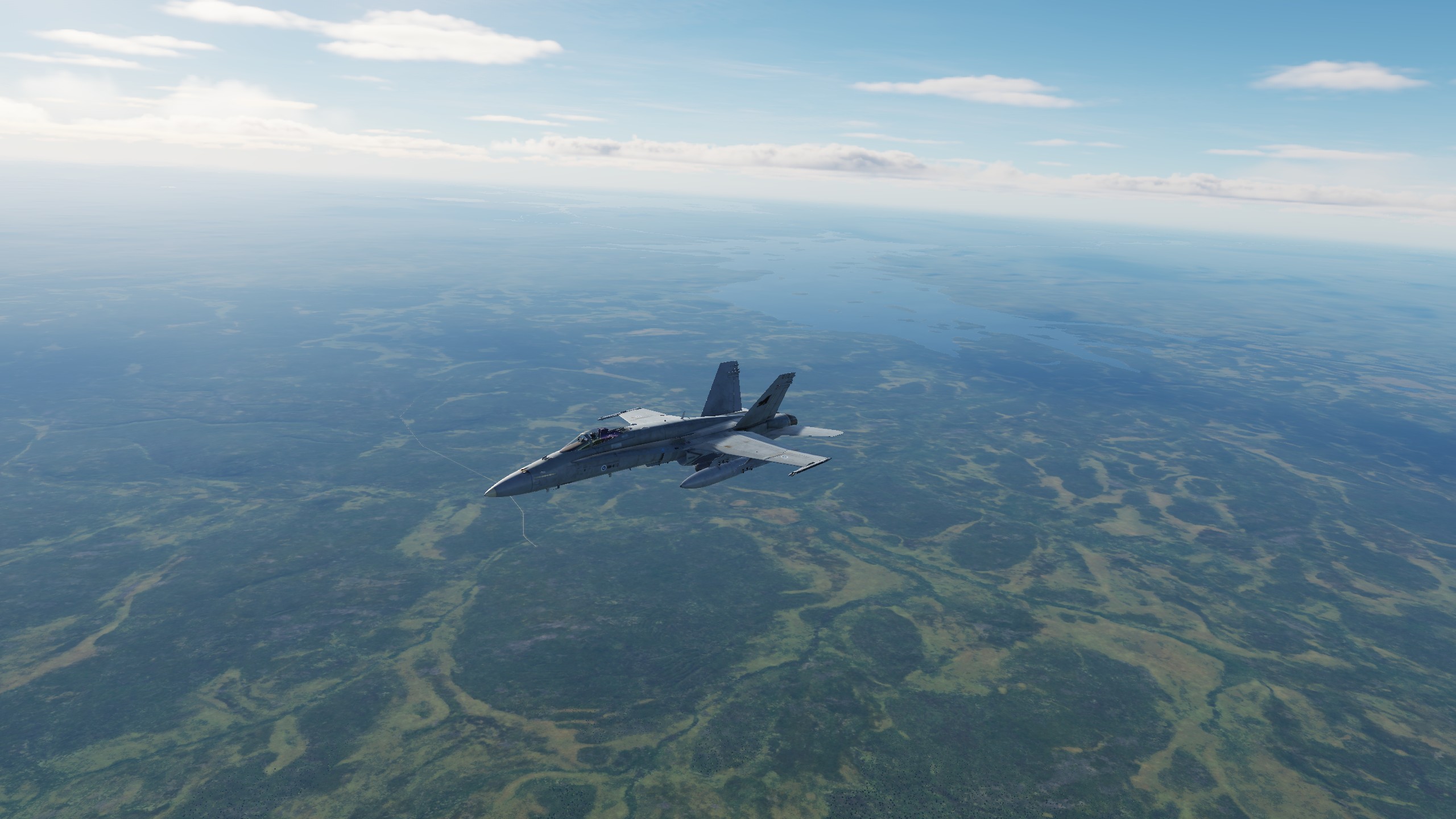 Flight in F/A-18C with Finnish markings from the road base to Lakselv. Lot’s of wood, lot’s of water.