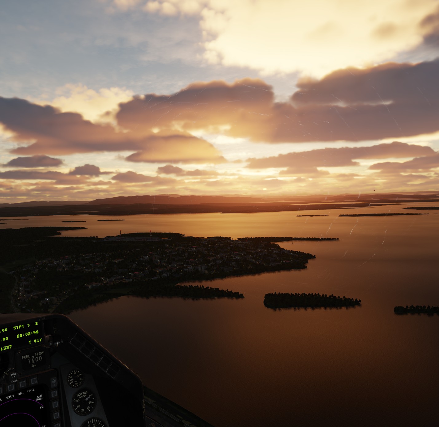 I recommend an excursion to Murmansk, preferably in the midnight sun. The night lighting is very nice, lit up runways are visible for 10s of nautical miles without zooming in, the eastern block apartments are partly lit, main roads and highways are partly lit. It’s pretty cool.