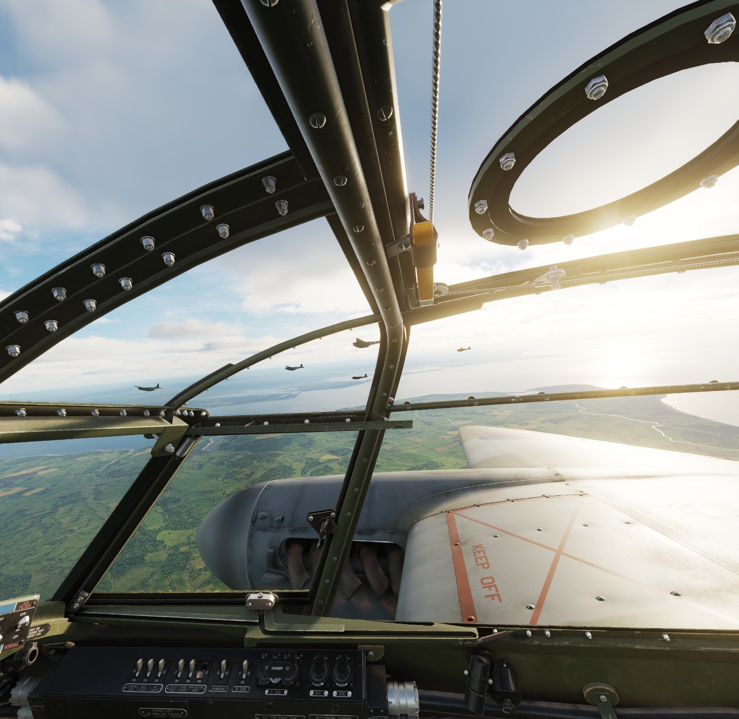 Incredible Mission on the 4YA PO Server, 6 Mossies Forming up over the Isle of White. The final strike group consisted of 10 Mosquitos, 3 P-51D and 2 P-47D providing fighter cover
