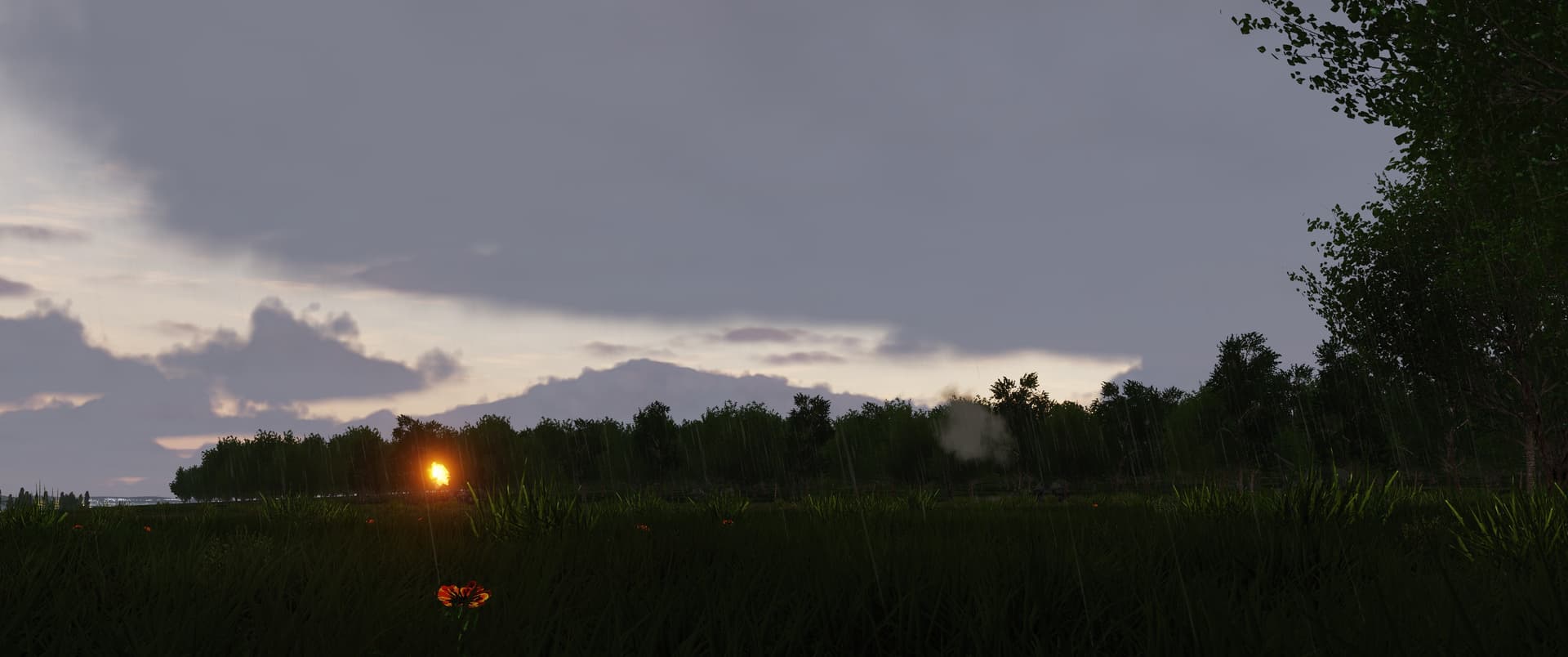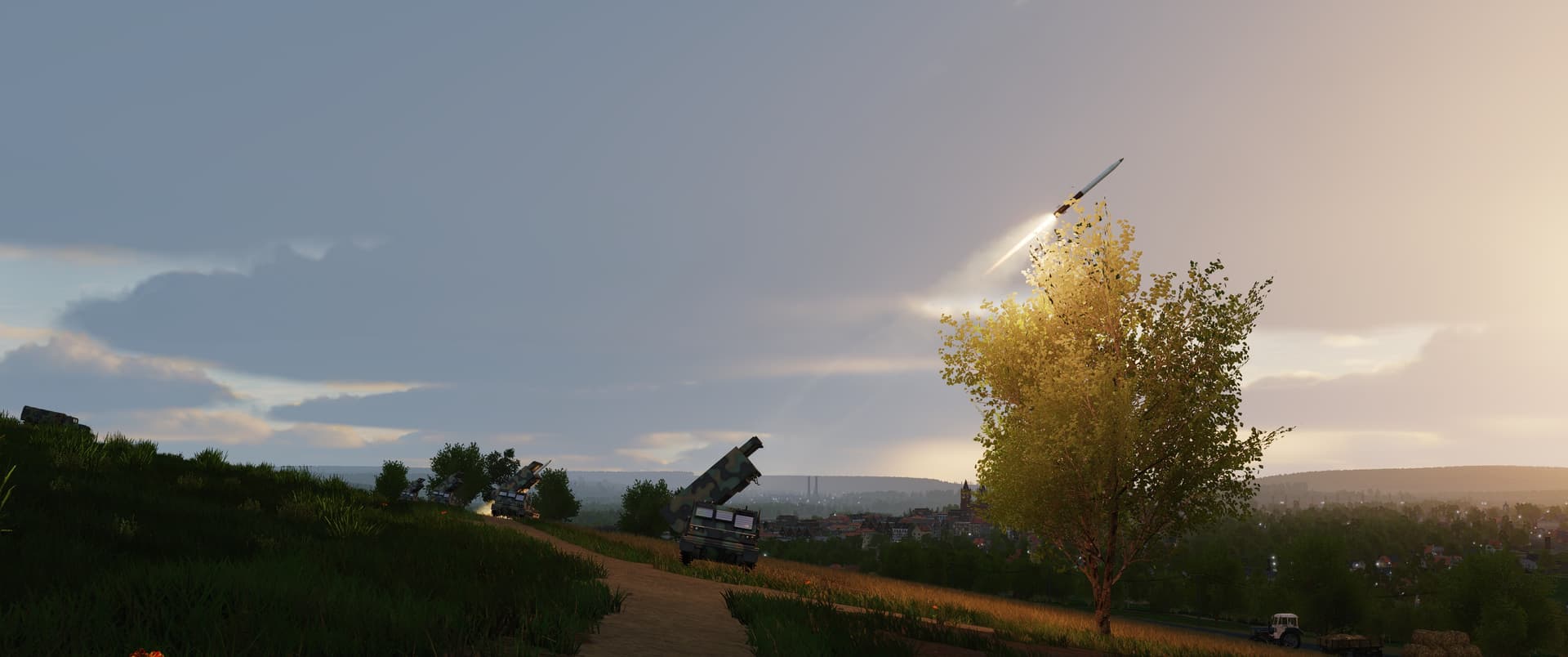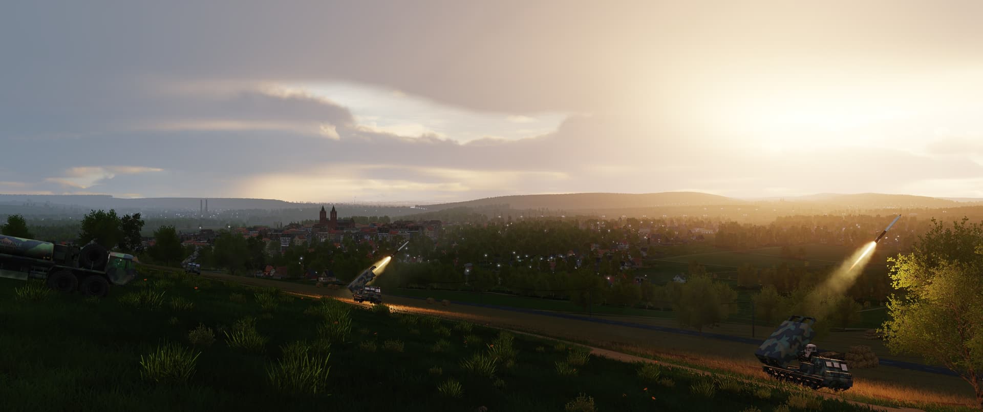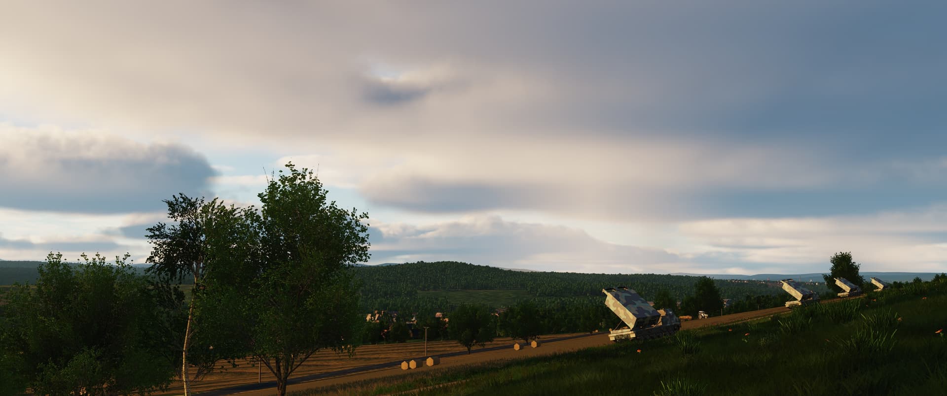 A small group of hastily assembled German Leopard tanks are watching the Soviet armor approach across the fields while the “Square Grid Removal System” puts in some work.
