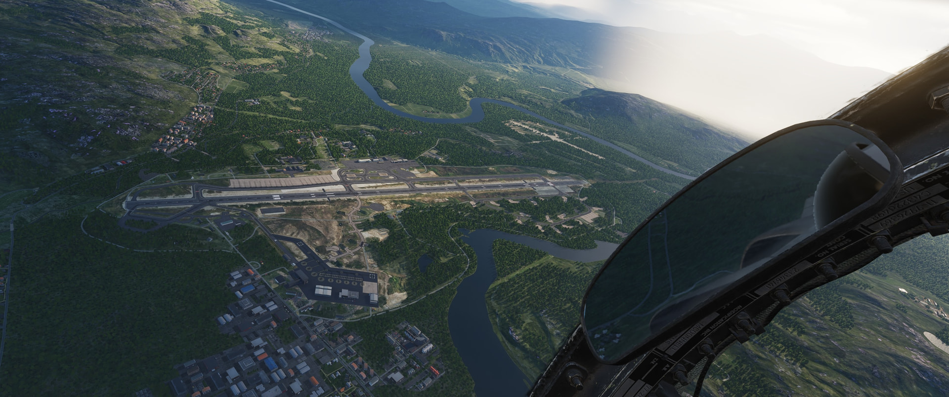Flying the ILS approach for RWY25 into ENBO is probably the most interesting approach you can fly in DCS as the ILS is offset from the Runway by 10° and you fly through the Fjords. Here I’m flying the approach along the coast and then finally via ADREL and TARKUP
