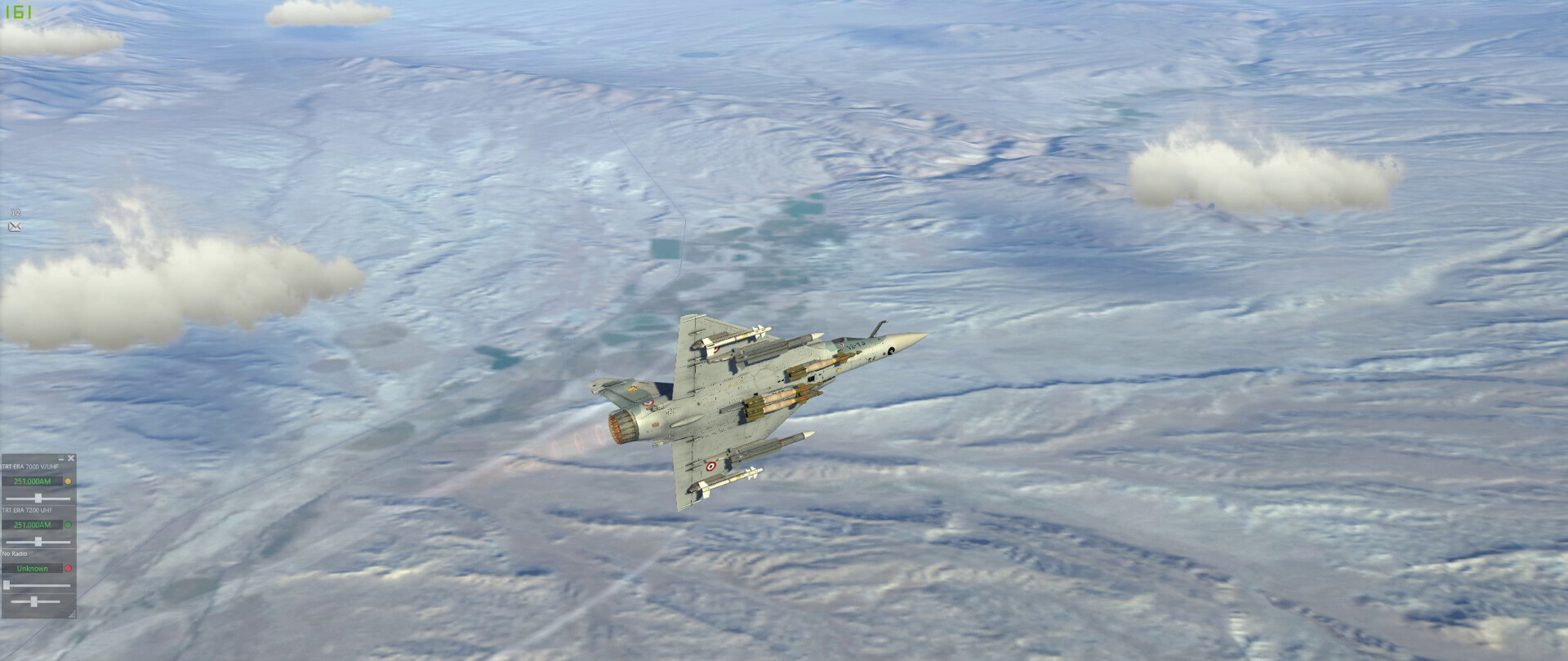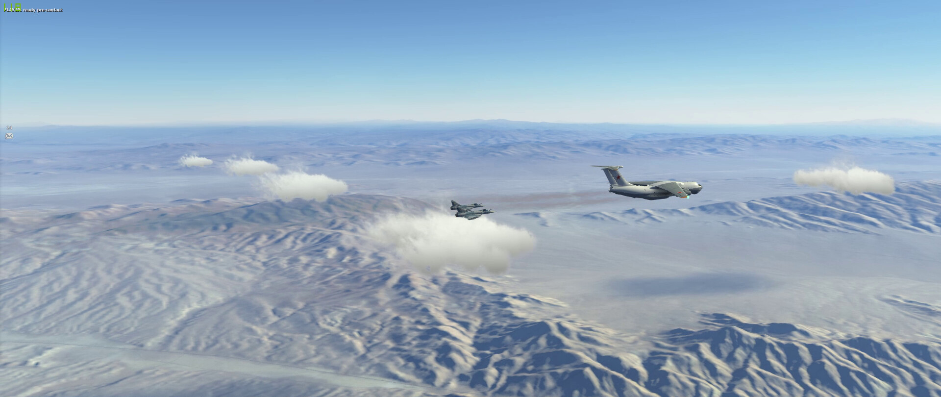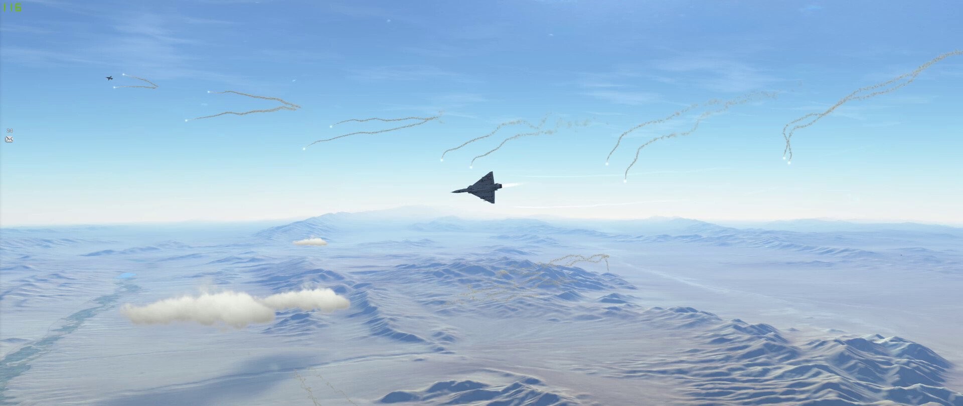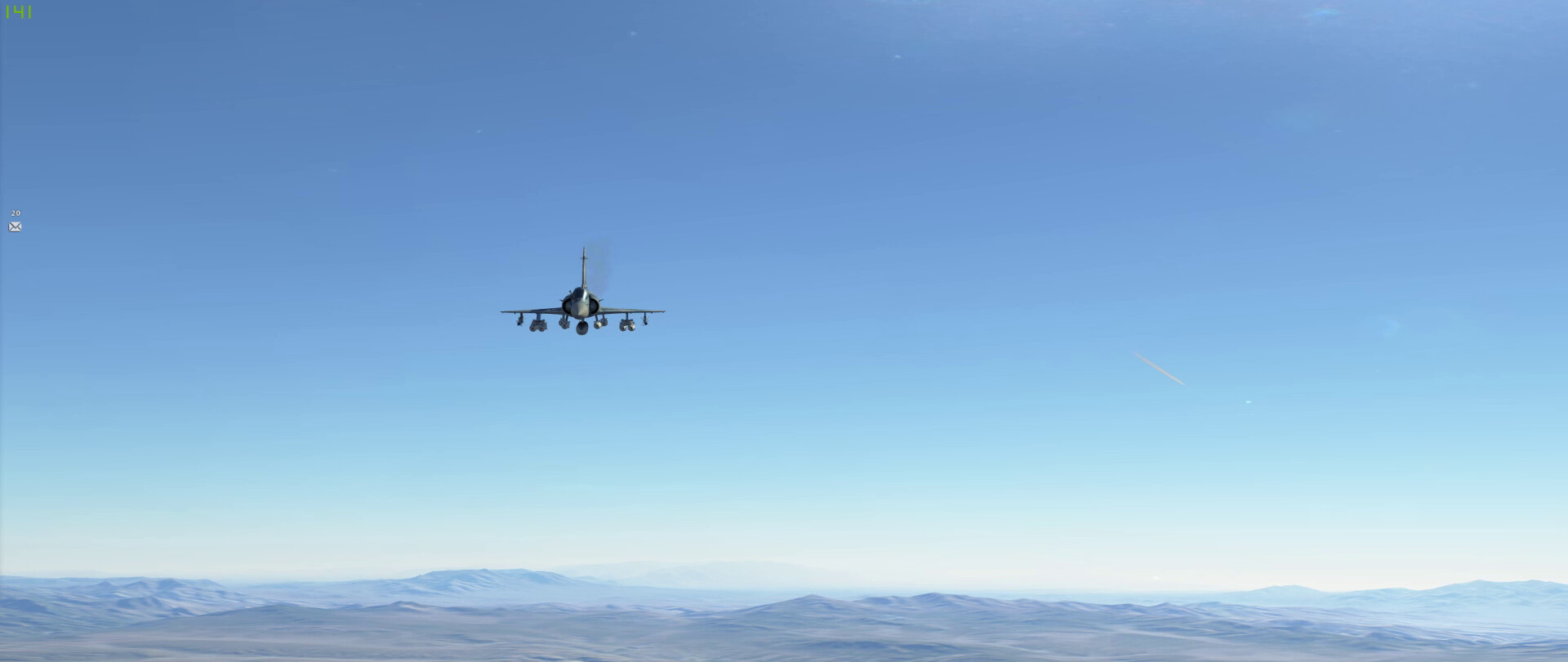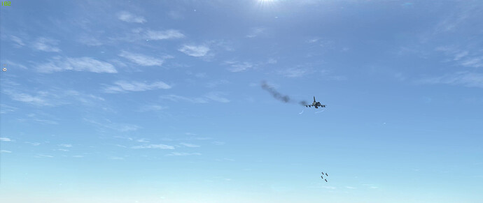 Fox … something … on a MiG-23 with @near_blind rolling in as a dot above the cloud (above my FPM). I get the missile hit on the MiG and some shrapnel into @near_blind