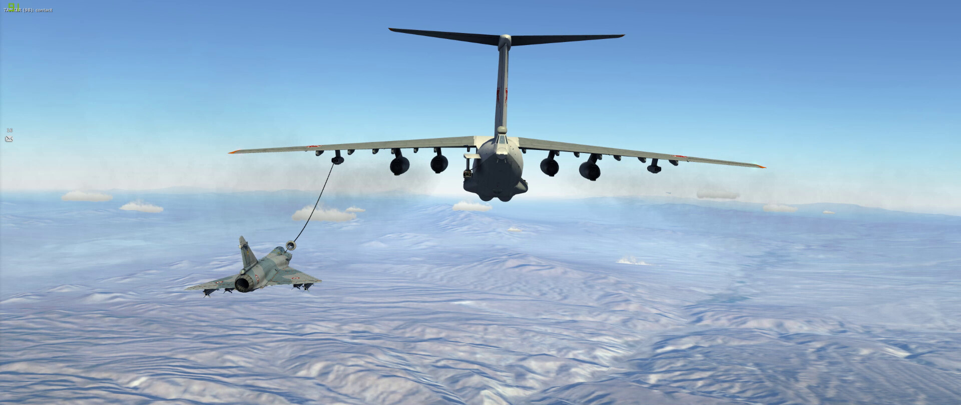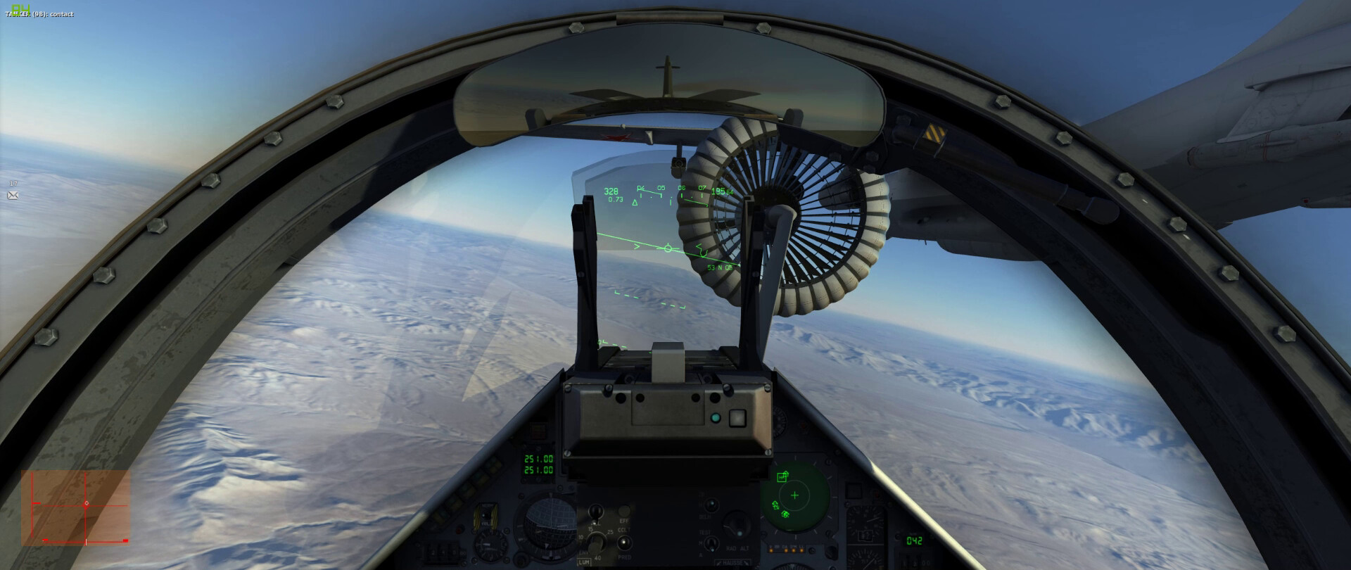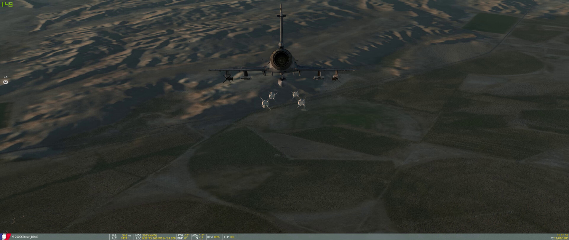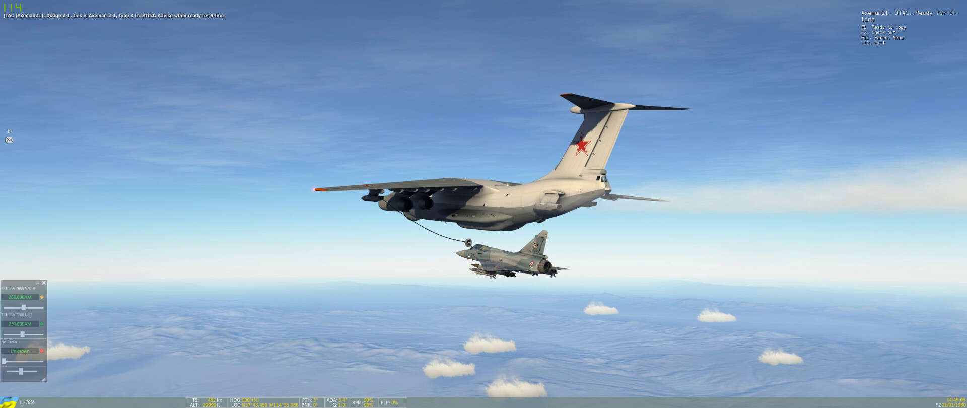 Fox … something … on a MiG-23 with @near_blind rolling in as a dot above the cloud (above my FPM). I get the missile hit on the MiG and some shrapnel into @near_blind