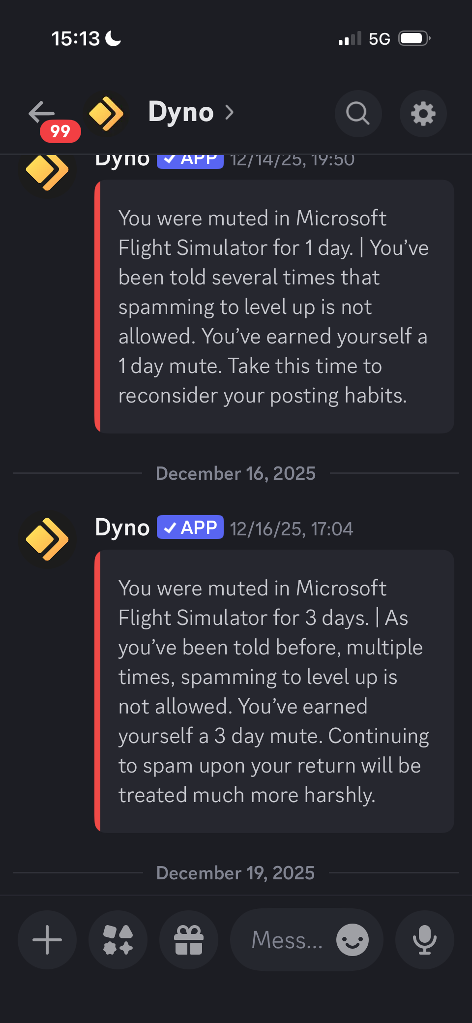 So I went to the sub called “General” and asked the question “Why am I unable to join comms?” The channel was very active with typical Discord/reddit nonsense, mostly whining about Asobo, Nvidia, PMDG and so on. My question was immediately answered with what amounted to RTFM. However a mod later came on to say that users must achieve Lvl 3 in order to join on comms. I asked how does one get to level three. More RTFM comments. One user went so far as to say that they were grateful for the IQ test because it kept idiots at bay. I think bots were more the intended target than old fools like Smokin’ Hole but the point was taken. The mod (ignoring the slur) said that to get level 3 I needed to chat 28 times, each time separated by at least one minute. “But I have nothing to say.” I said (with some irony). “Just participate. But don’t spam!”, he/she said.