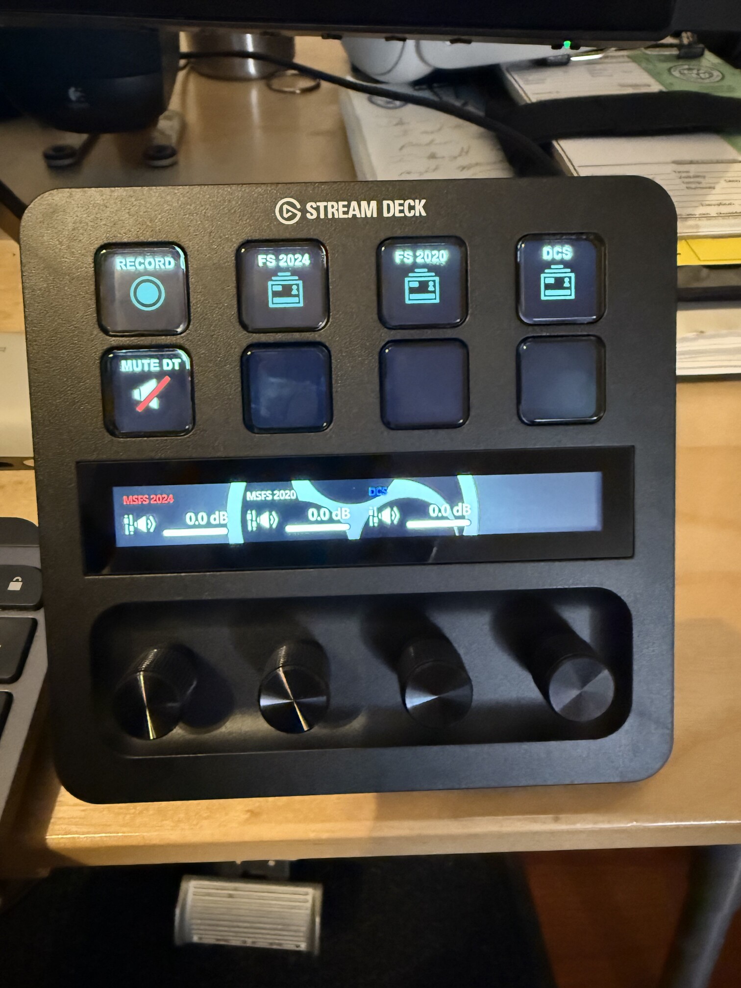 Building my first profile using the OBS Studio plugin downloaded from the xmarketplace. This is for capturing simulations. I can switch scenes (sims), start/stop recording, mute the audio output, and hopefully adjust audio volume on this page. Troubleshooting atm why the dial channels aren’t linking to the correct audio output, even though they are linked to scenes. The buttons are working perfectly.