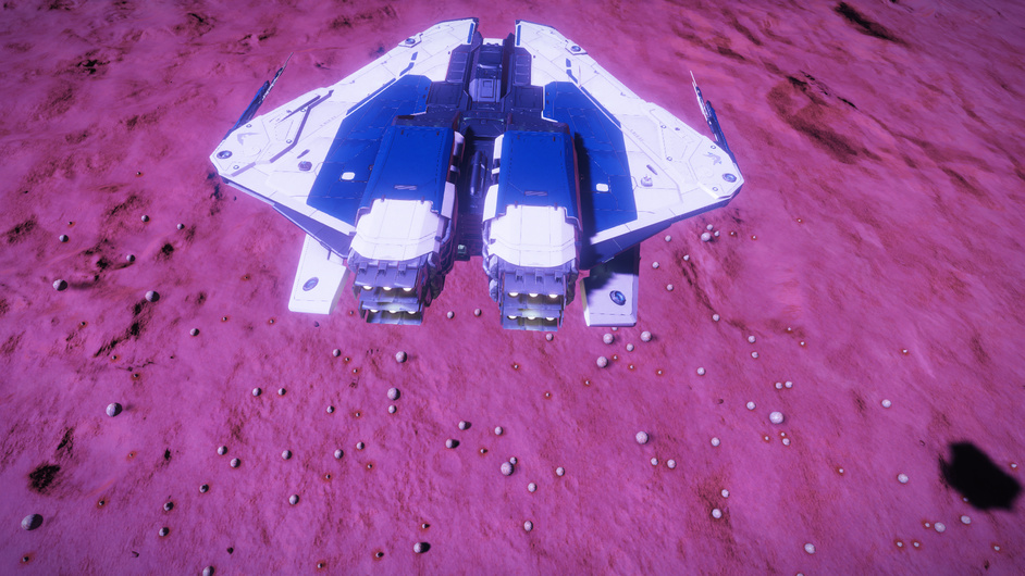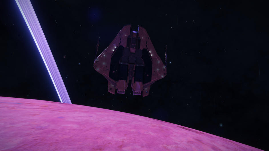 After 10 minutes tooling around on the ground the overwhelmingly pink landscape starts to give me a headache, so I make a swift exit and head on to the next stop on this whistle stop tour of the galaxy.