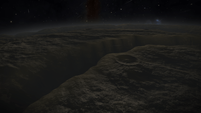 A great buggy day was when another player and i decided to fly to a very large crater, one with the spike in the center. We landed and deployed on the spike and our goal was to drive down to the bottom of the crater. Well the spike ended up being many multiple kilometres tall and the spike faces became almost vertical in places. We both died in the attempt, but great fun.