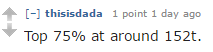 Reddit seems a little more up-to-date on the lower boundaries - I’m not even thinking about breaking into the top 10% just yet.