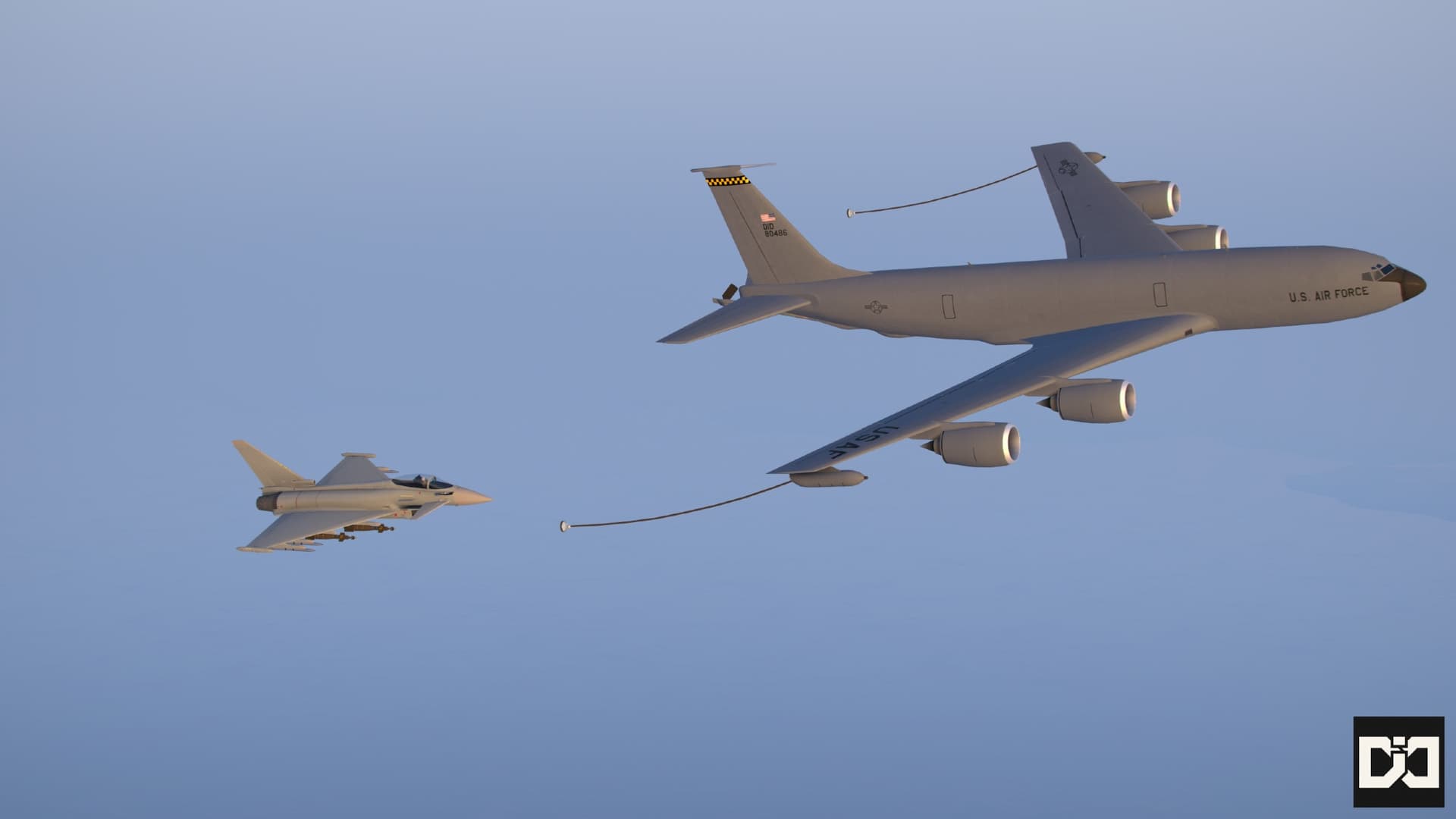 That mission was much easier for us because no one threatened us when we flew over the target and there were 2 flights of Eurofighter Typhon, each with 4 planes in ESCORT and Wild Weasel (WW) role. Our STRIKE mission started almost 20 min., after flights (two EF, one F-22) which got the clearance to taxi and take off before us. Rush traffic on the big airfield like on the highway in peak hour. It looks like the Alpha Strike, 16 planes took off step by step.